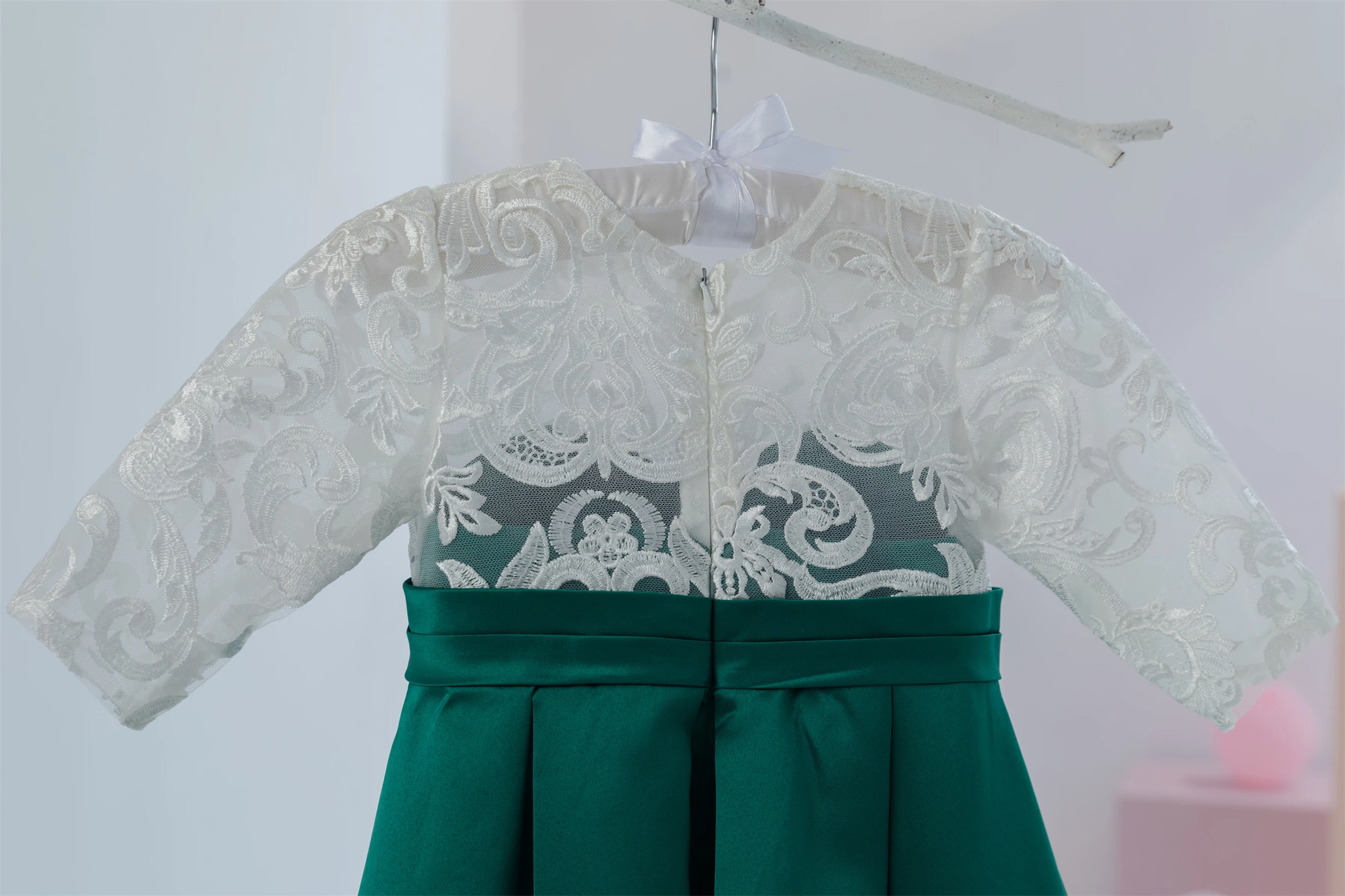 Scoop-neck Short-sleeve Two-Tone Peacock Empire Flowergirl Dress