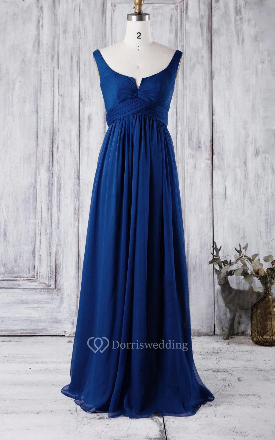 Scoop Neck Sleeveless Empire Pleated A-line Chiffon Long Dress