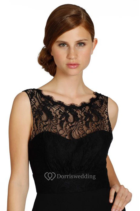 Scoop Neck Sleeveless Lace Chiffon Bridesmaid Dress
