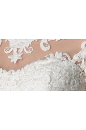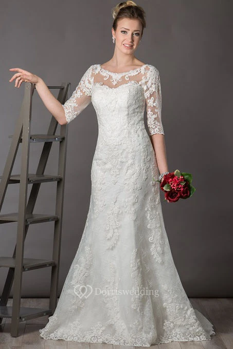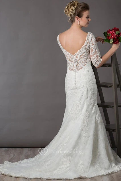 Scoop Neck V Back Lace Bridal Gown With Illusion Half Sleeve