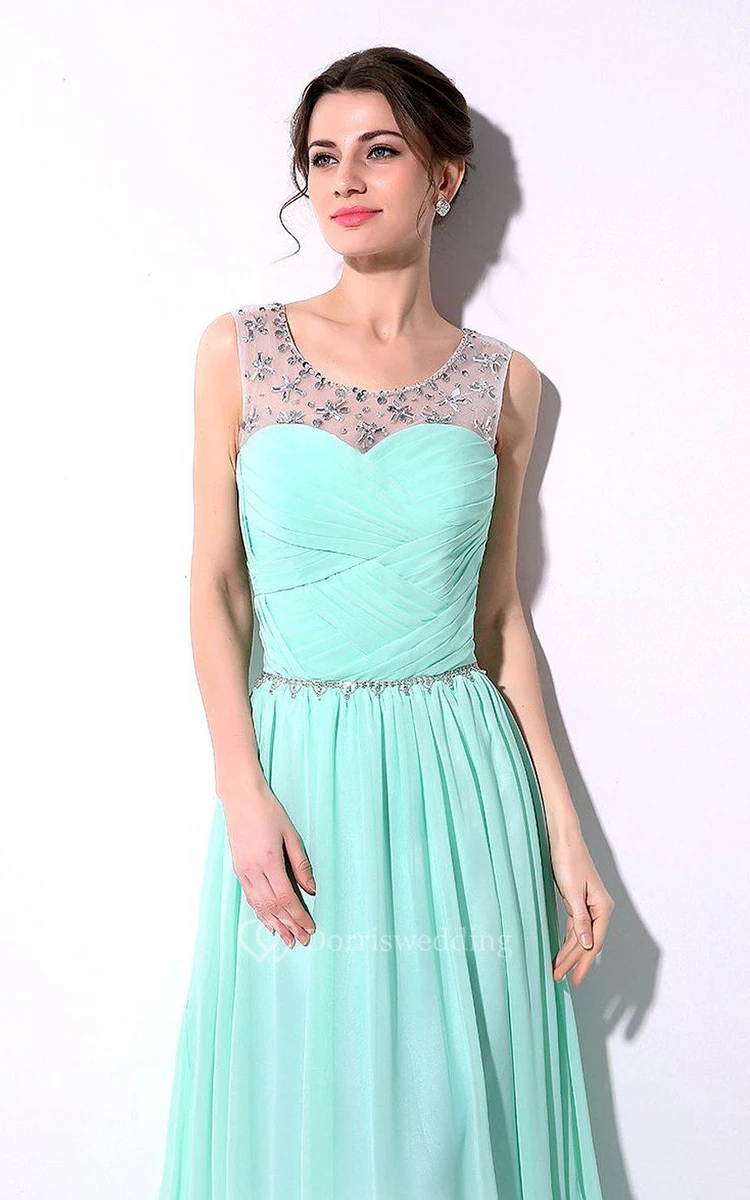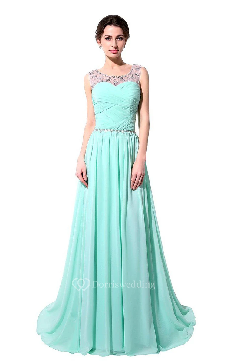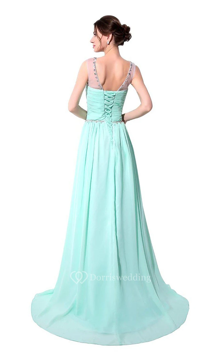 Scoop-neckline Chiffon Long Dress With Lace Up Back