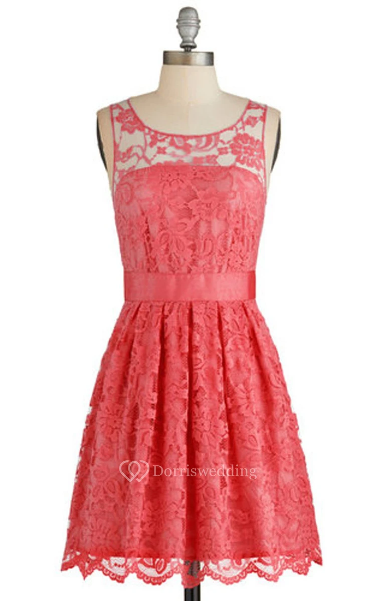 Scoop Neckline Lace Bridal Dress With Belt