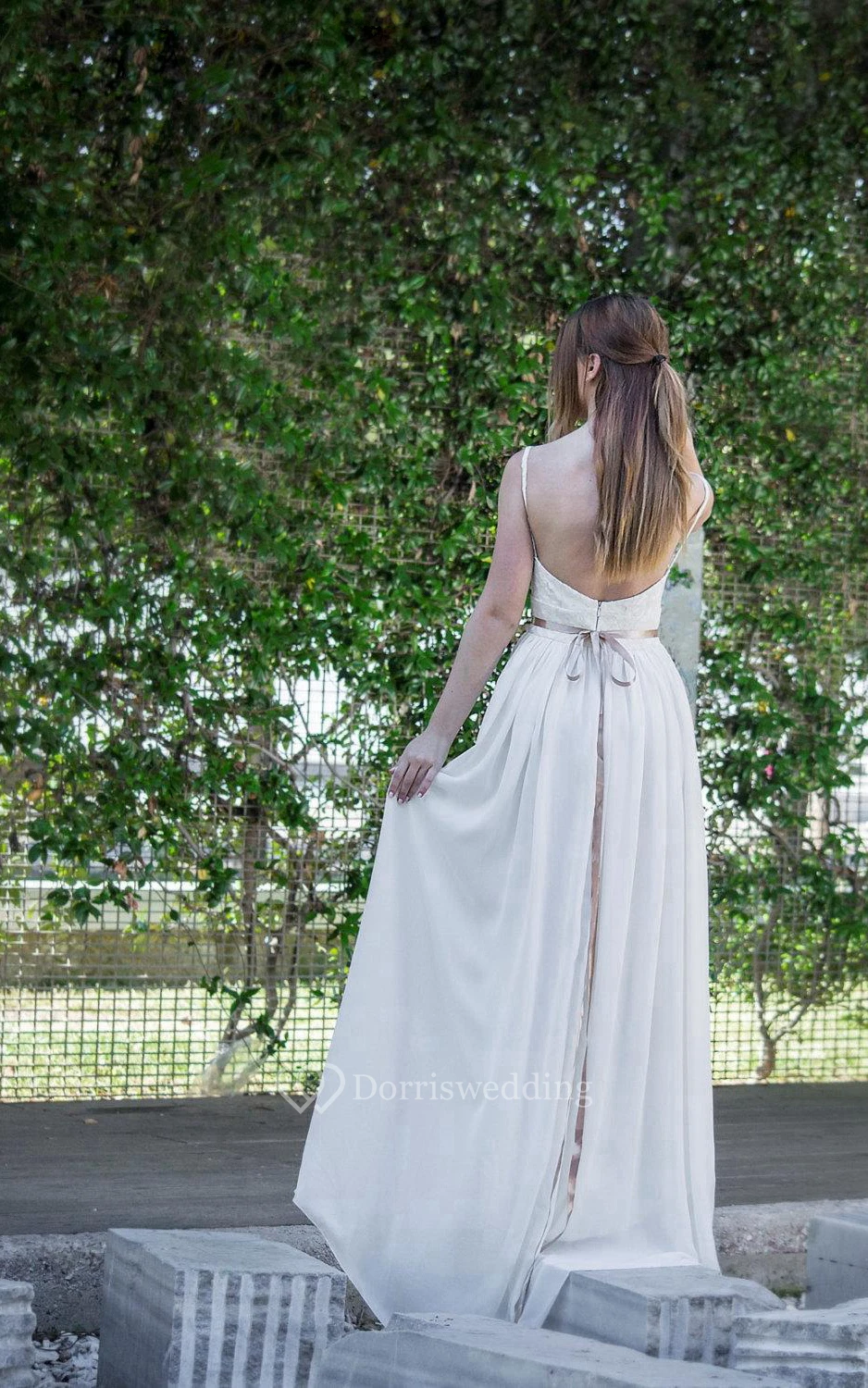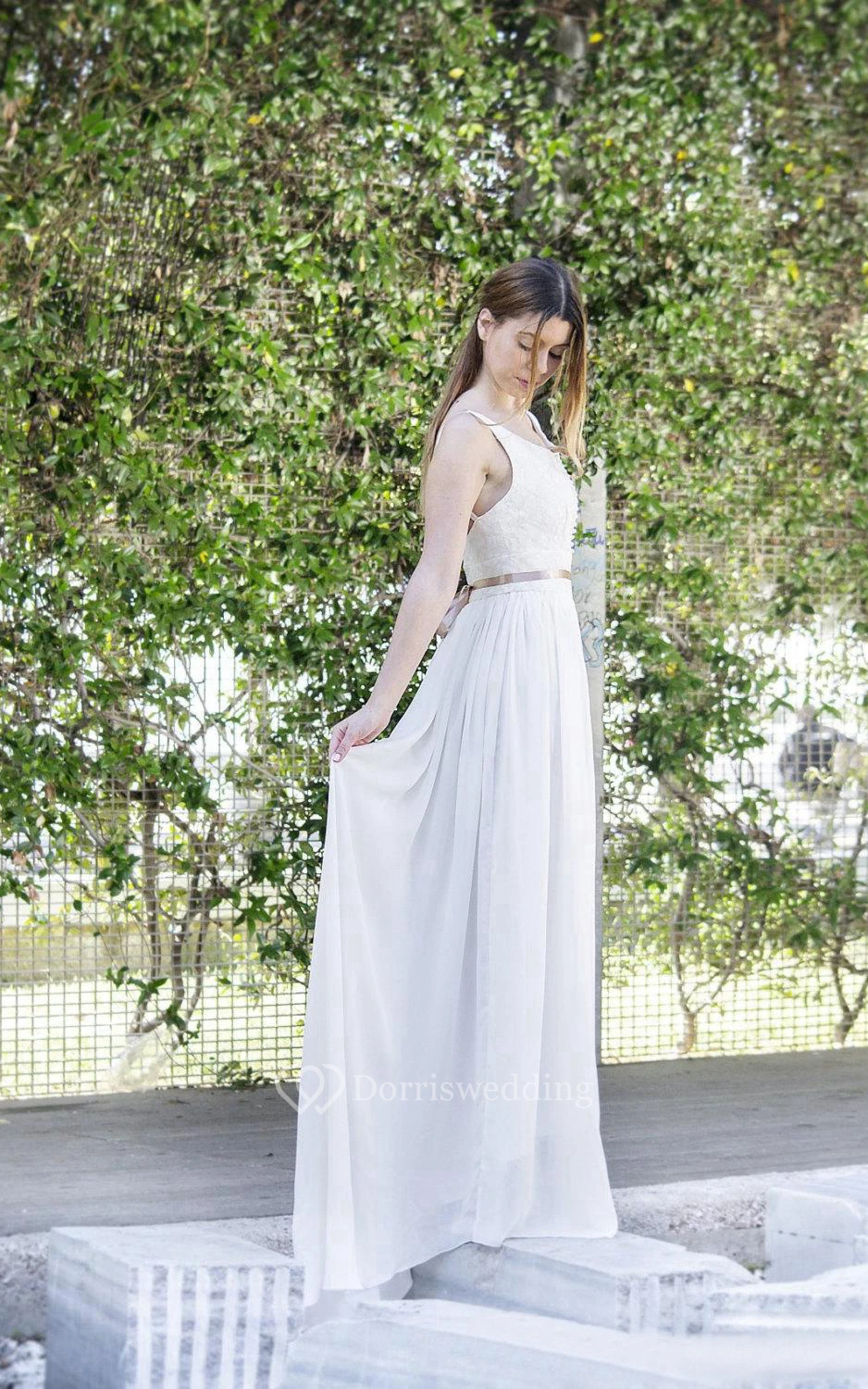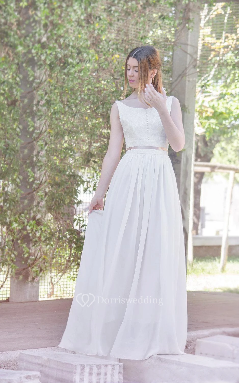 Scoop Neckline Sleeveless A-Line Chiffon Dress With Lace Bodice and Beadings