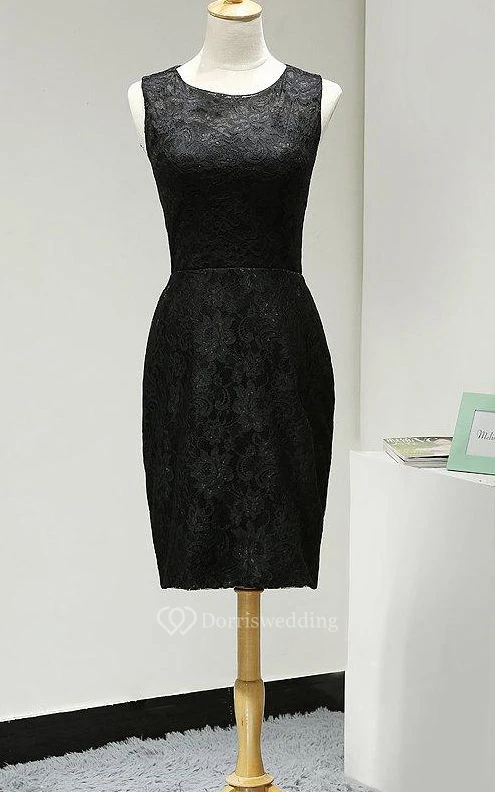 Scoop Neckline Sleeveless Sheath Lace Knee Length Dress
