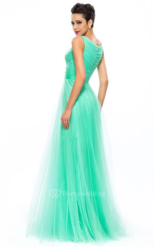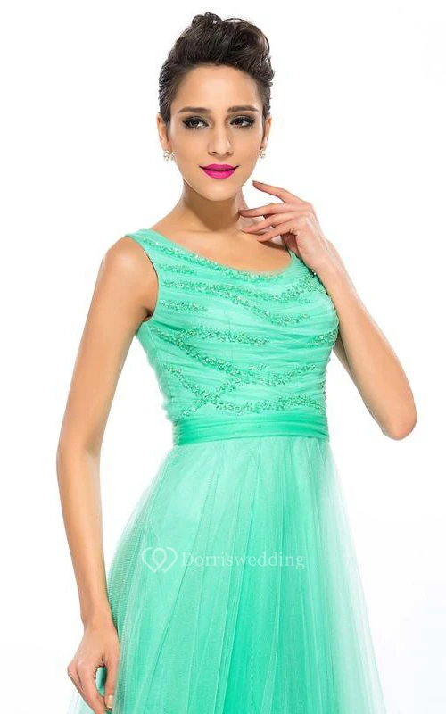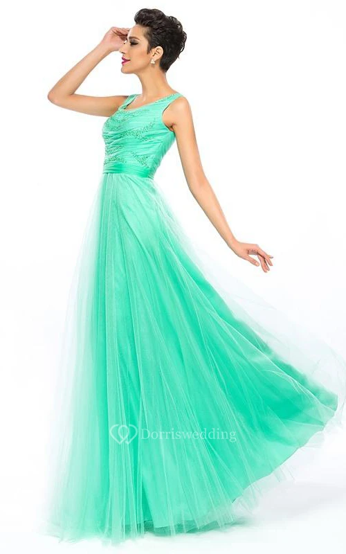 Scoop Sequins Beading A-Line Floor-Length Prom Dress