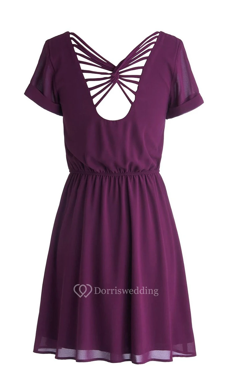 Scoop Short-sleeve Bridal Dress With Lace-up Back