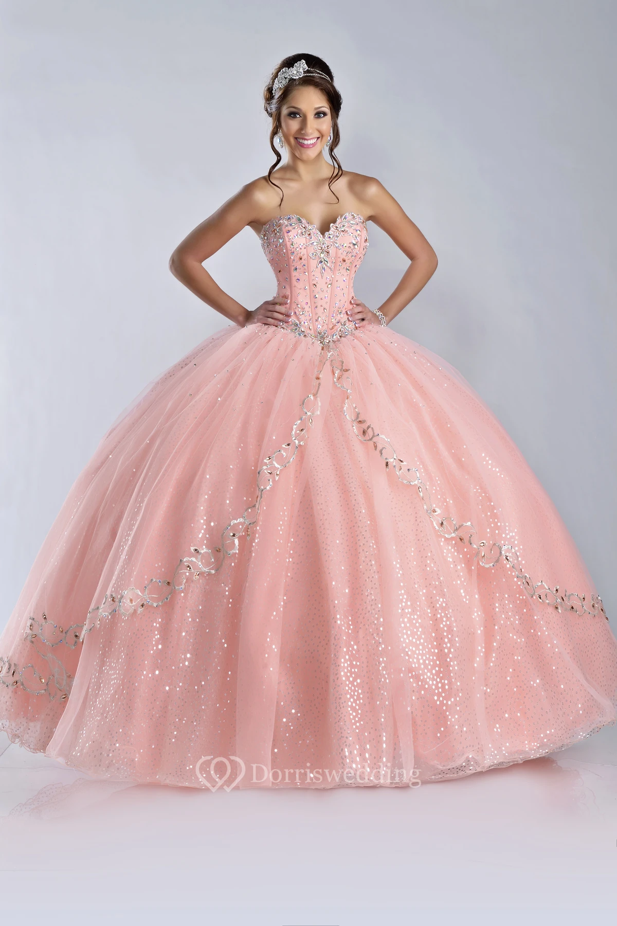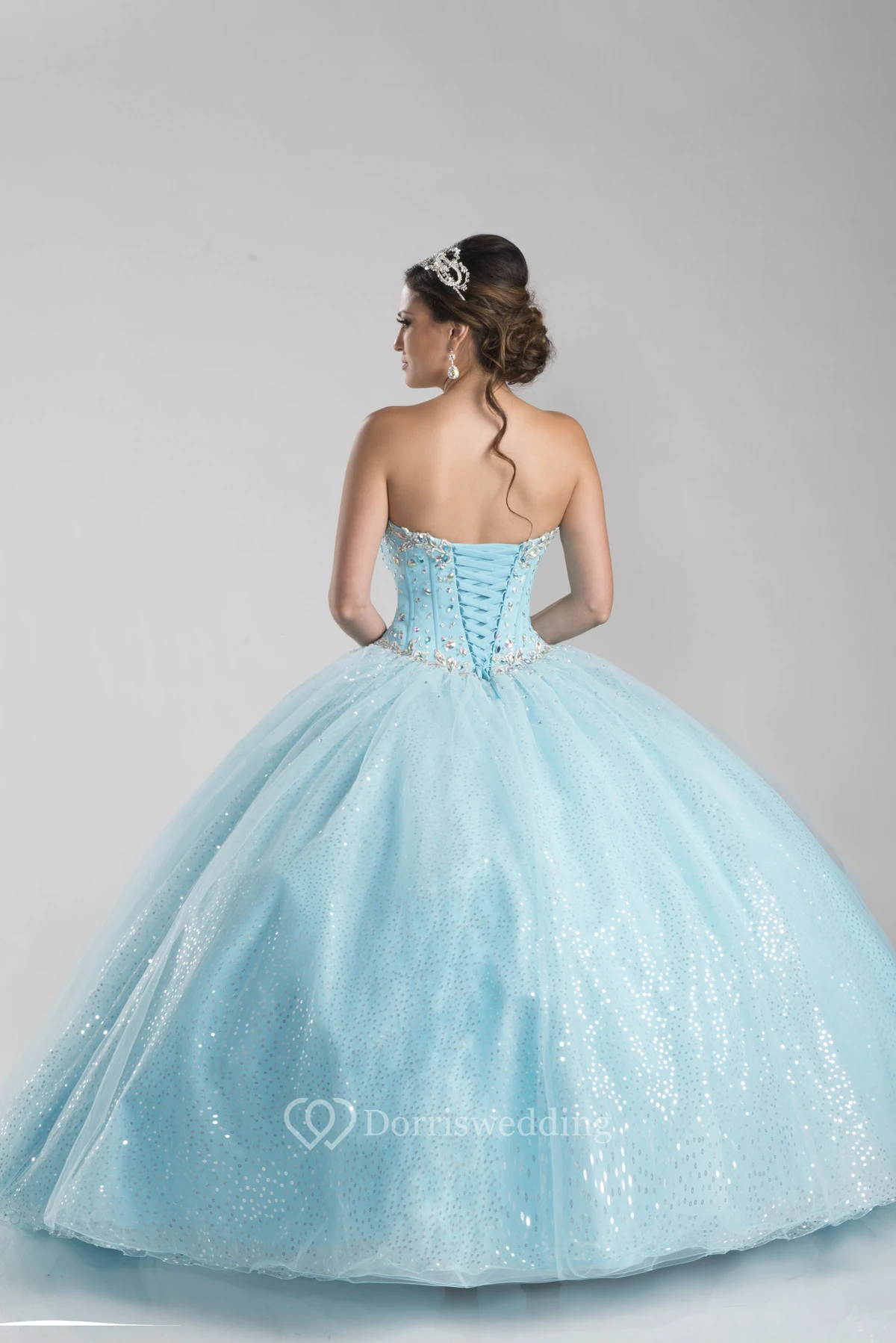Sequin Embellished Sweetheart Ball Gown With Lace-Up Back