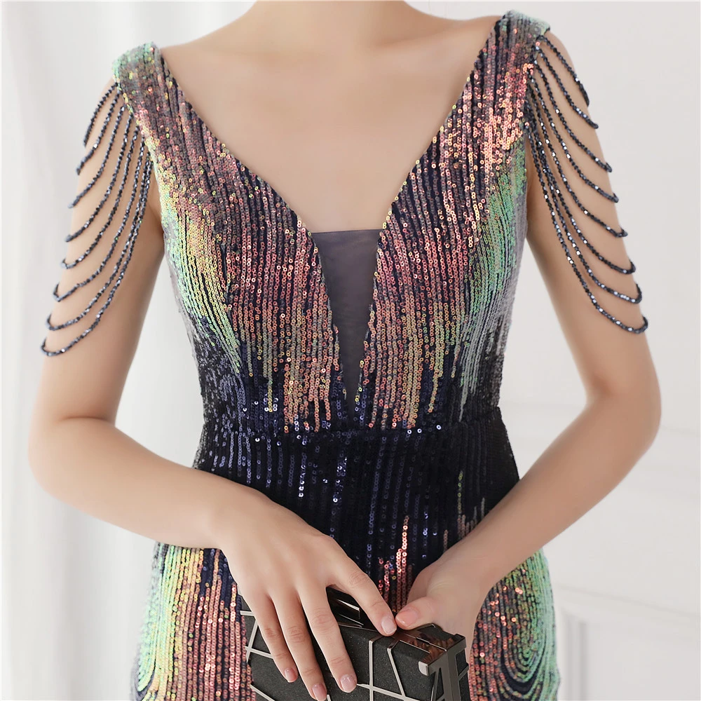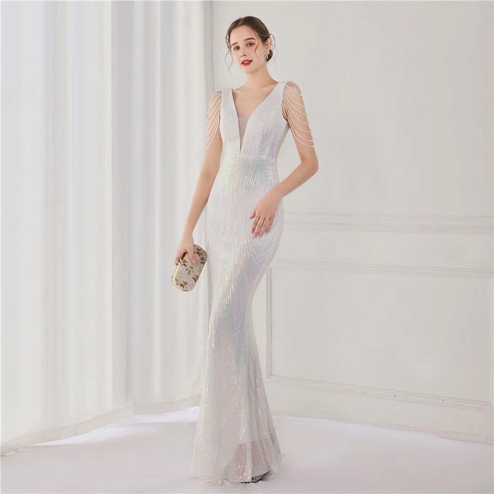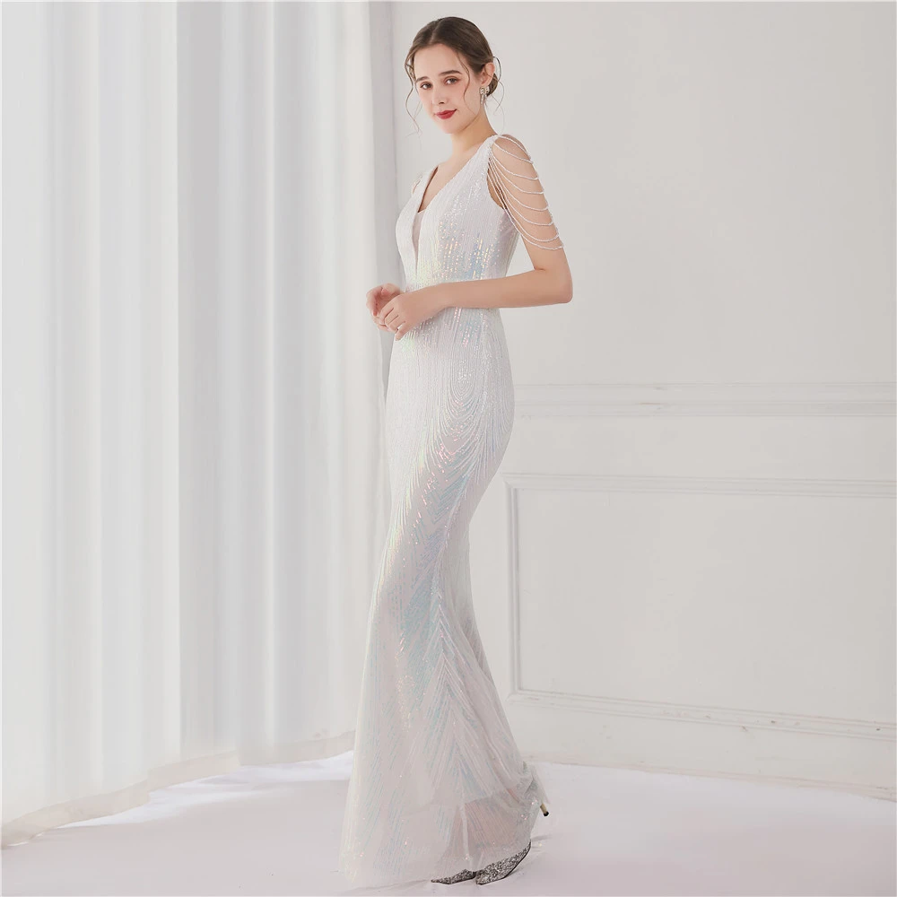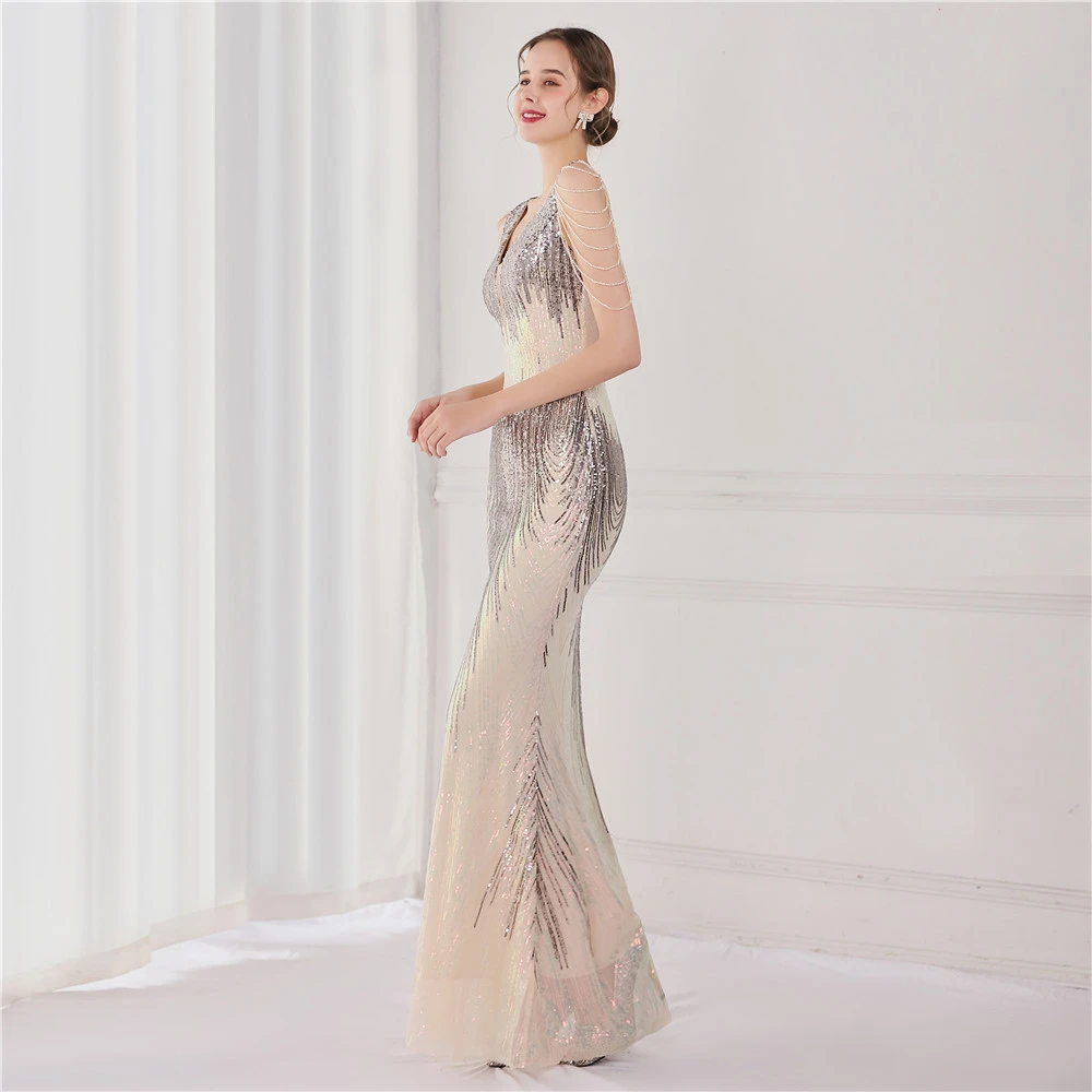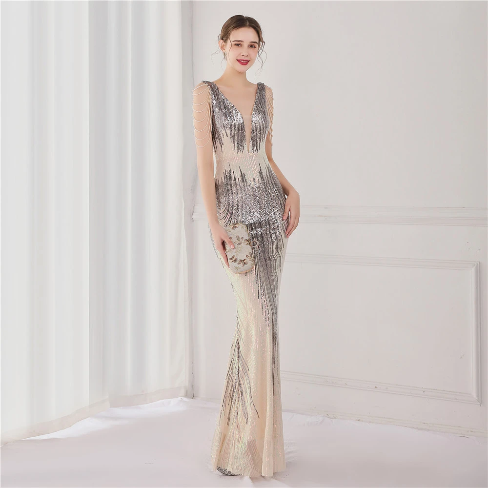 Sequin Fishtail Long Dress Performance Net Celebrity Event Banquet Car Model Etiquette Evening Dress
