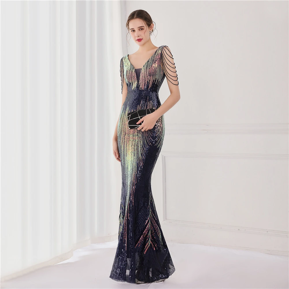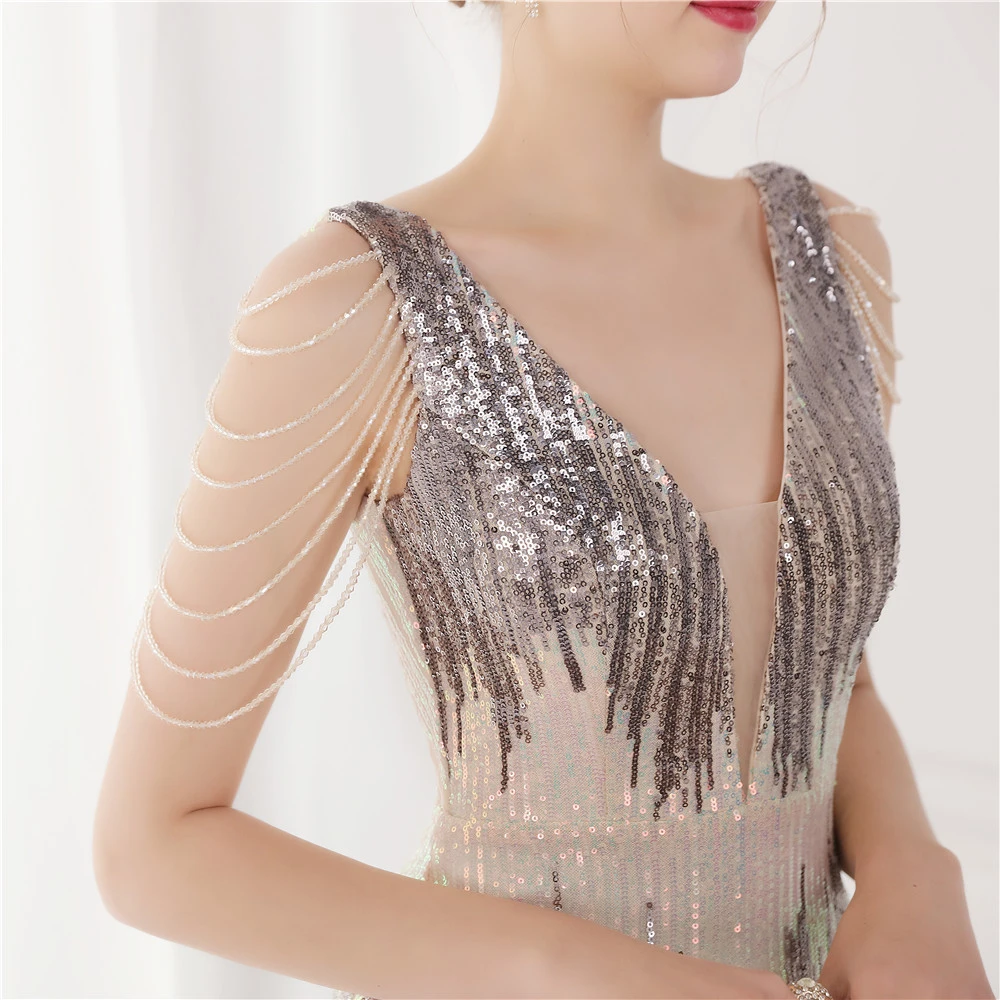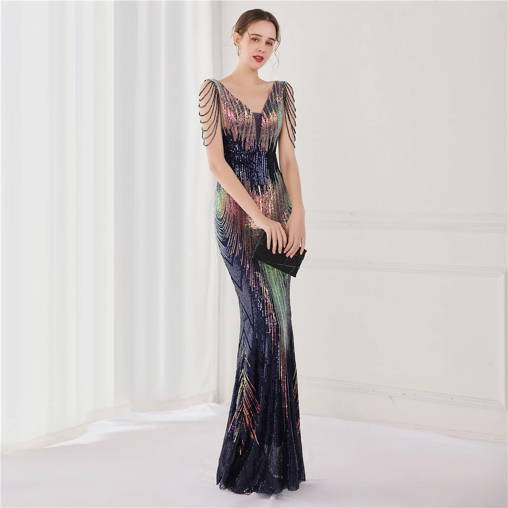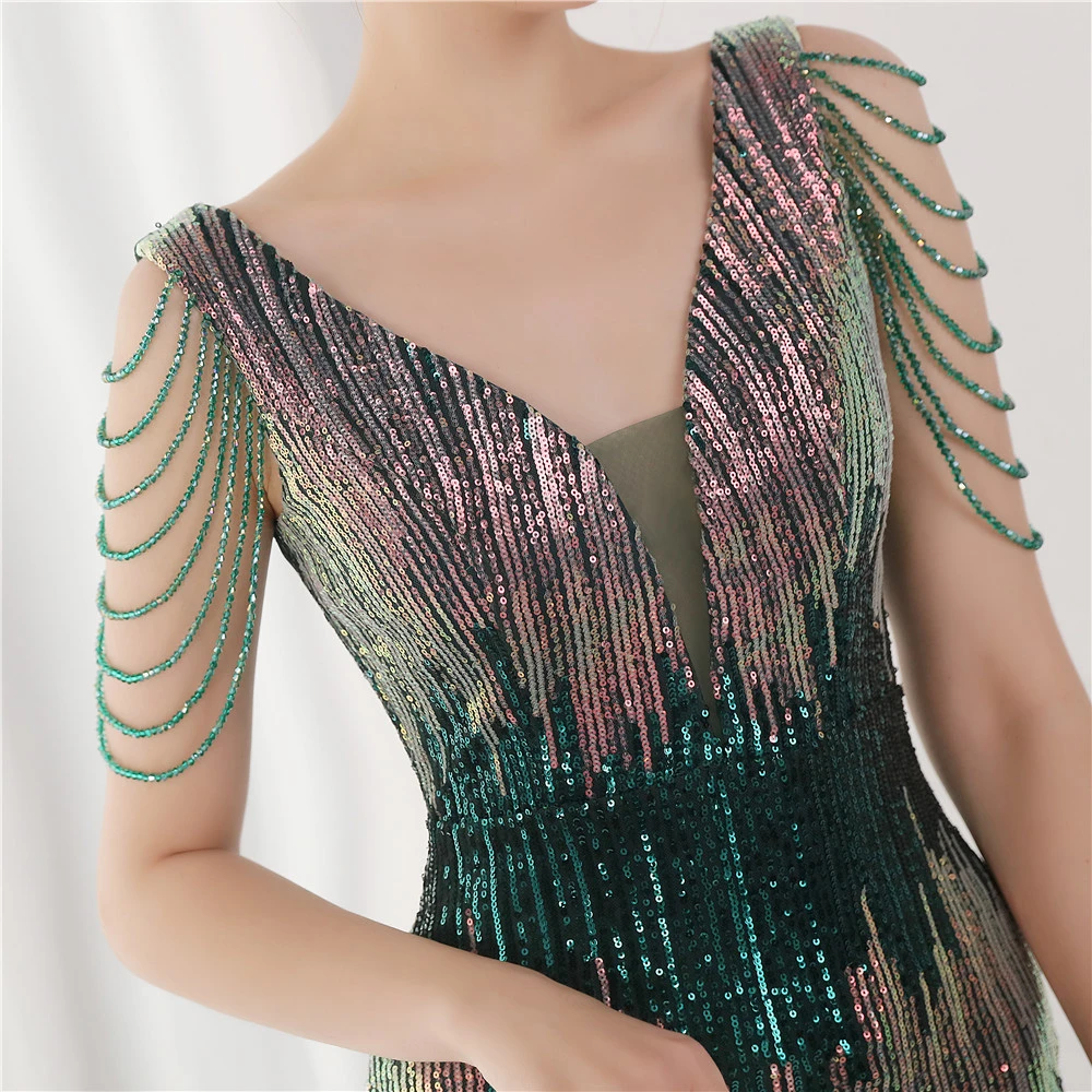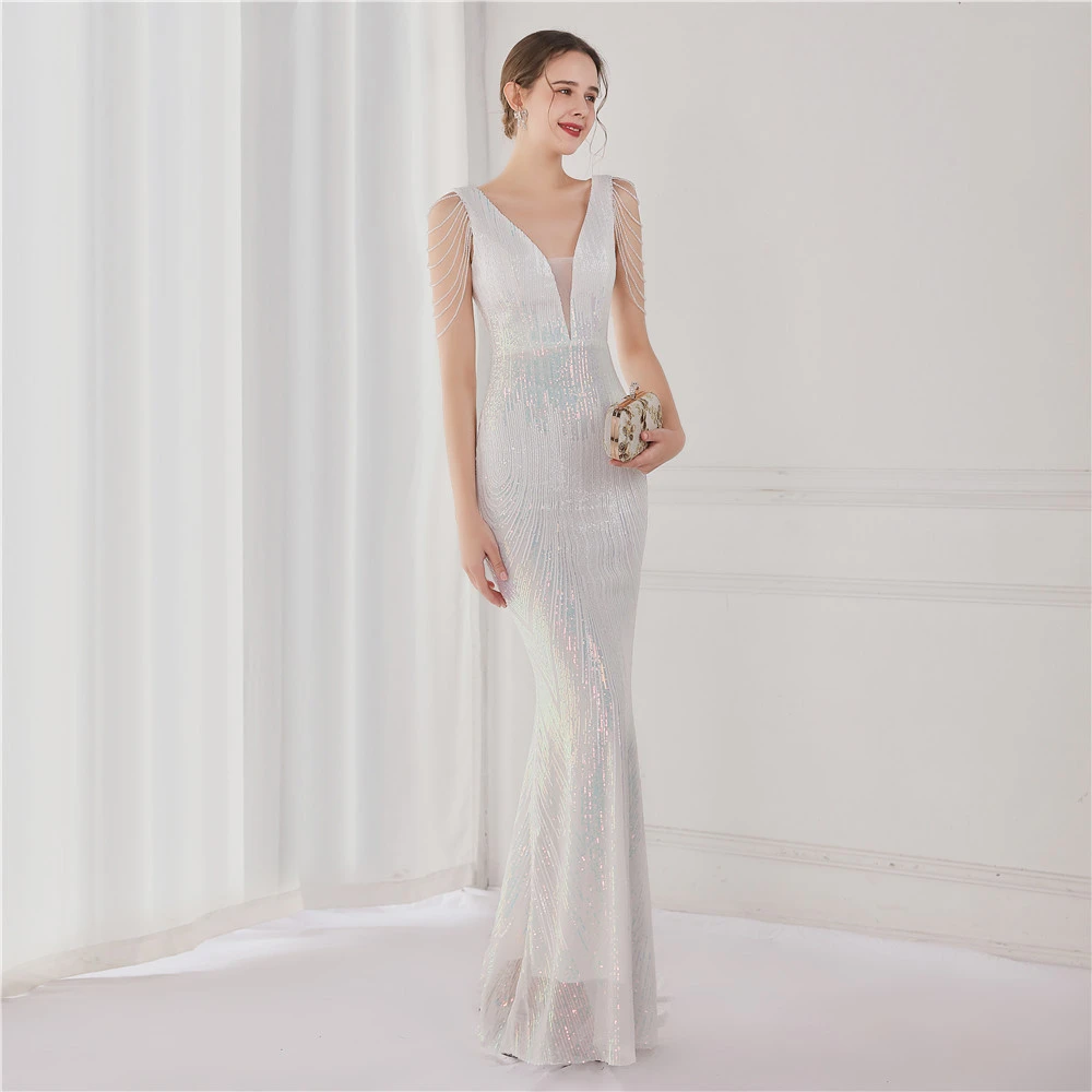 Sequin Fishtail Long Dress Performance Net Celebrity Event Banquet Car Model Etiquette Evening Dress