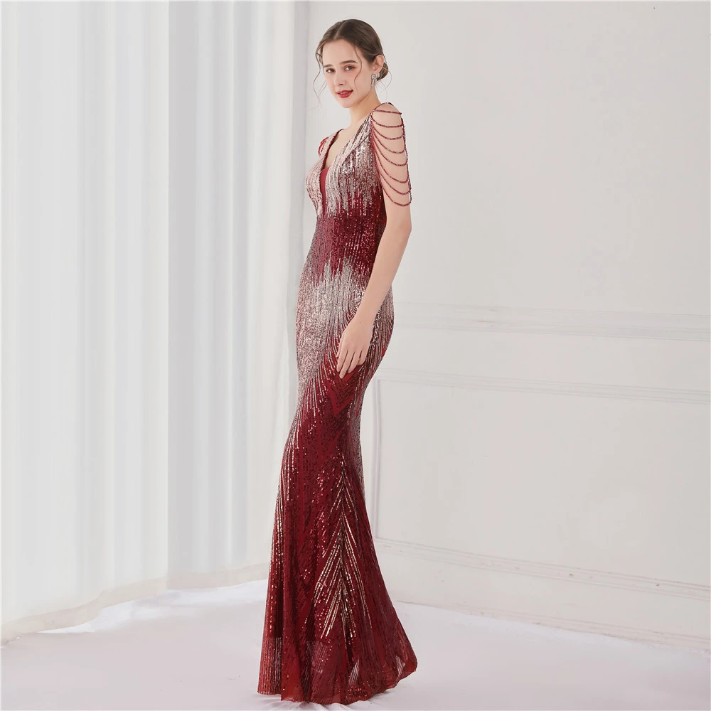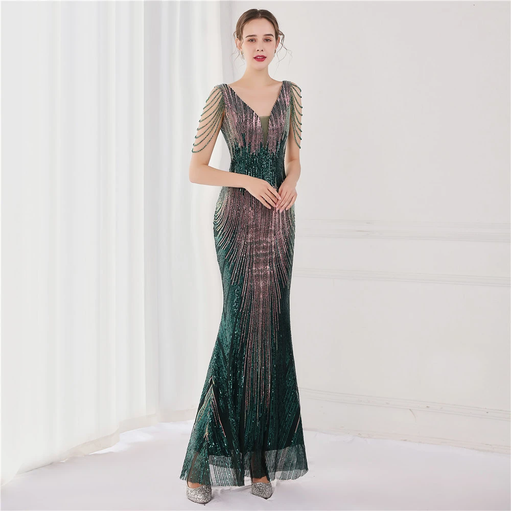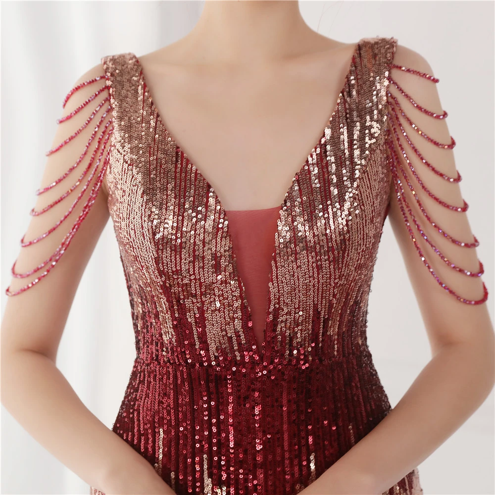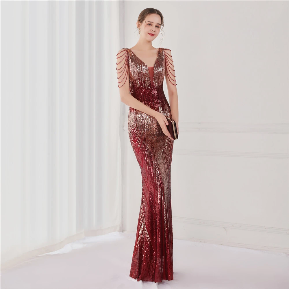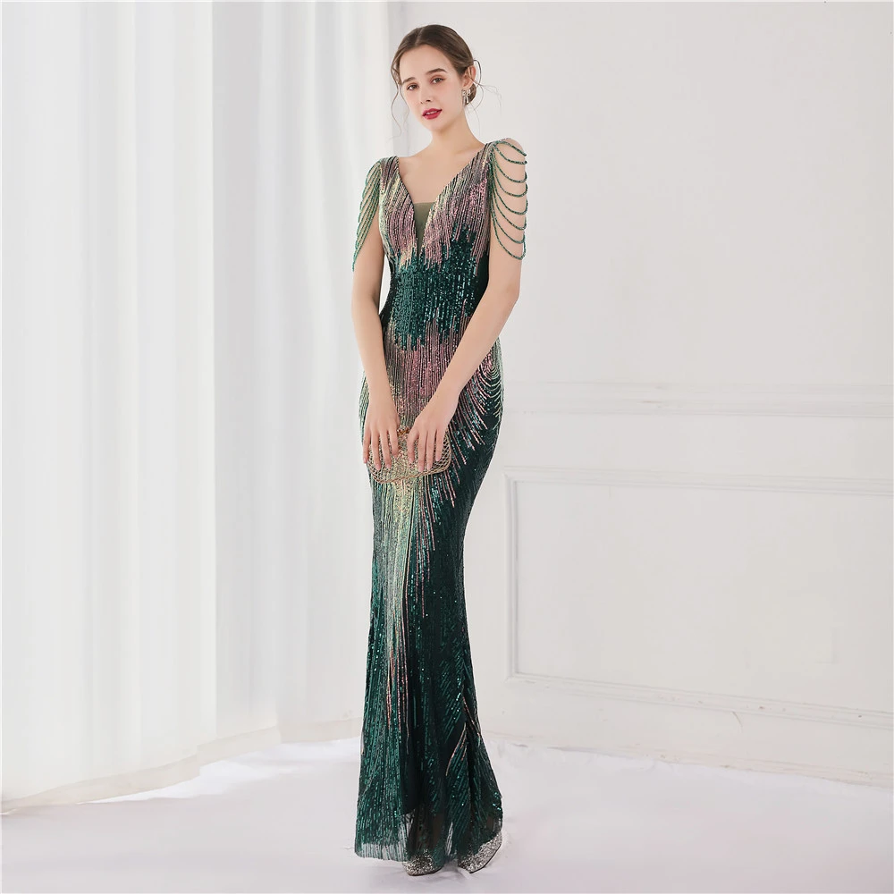 Sequin Fishtail Long Dress Performance Net Celebrity Event Banquet Car Model Etiquette Evening Dress