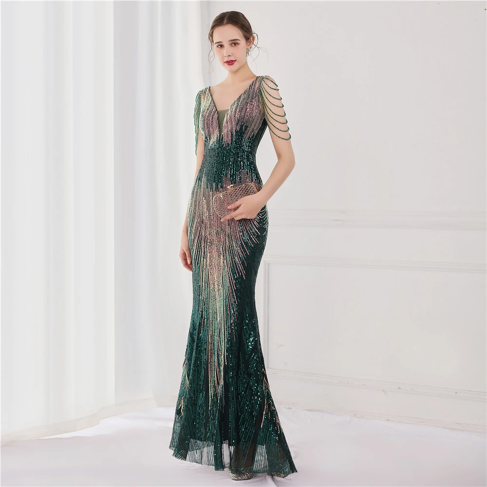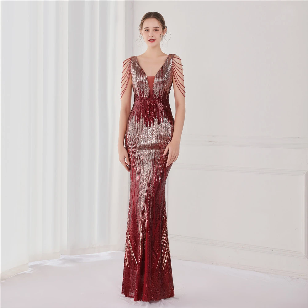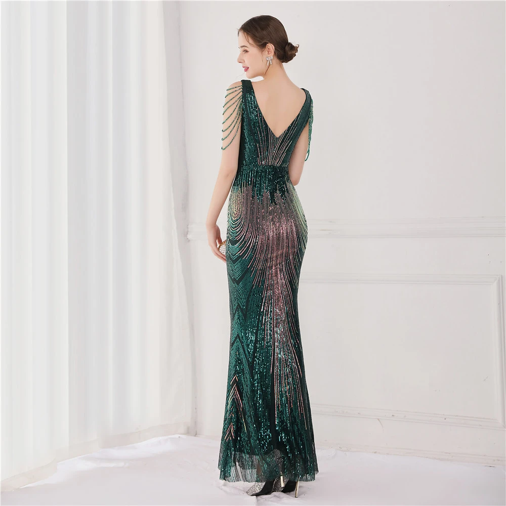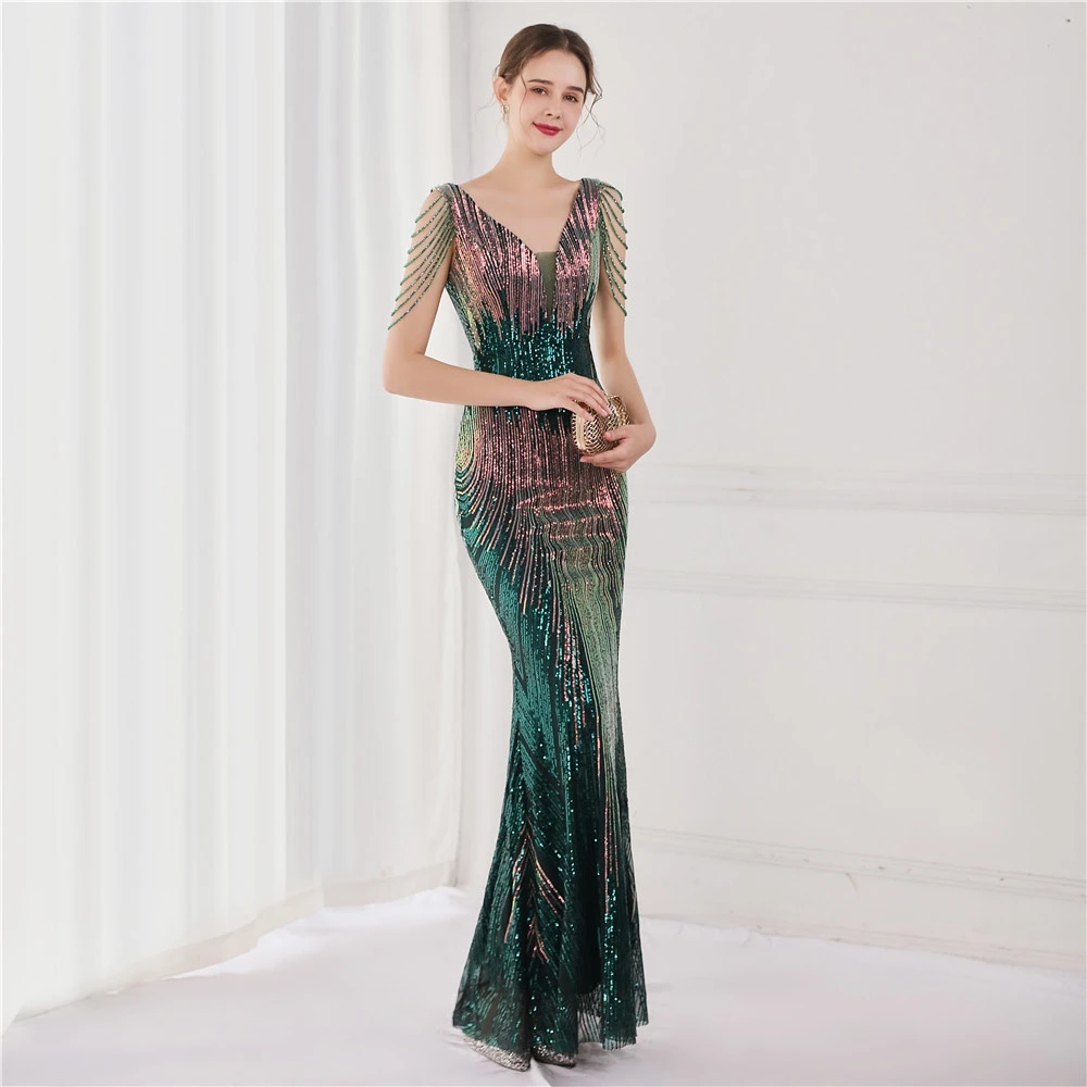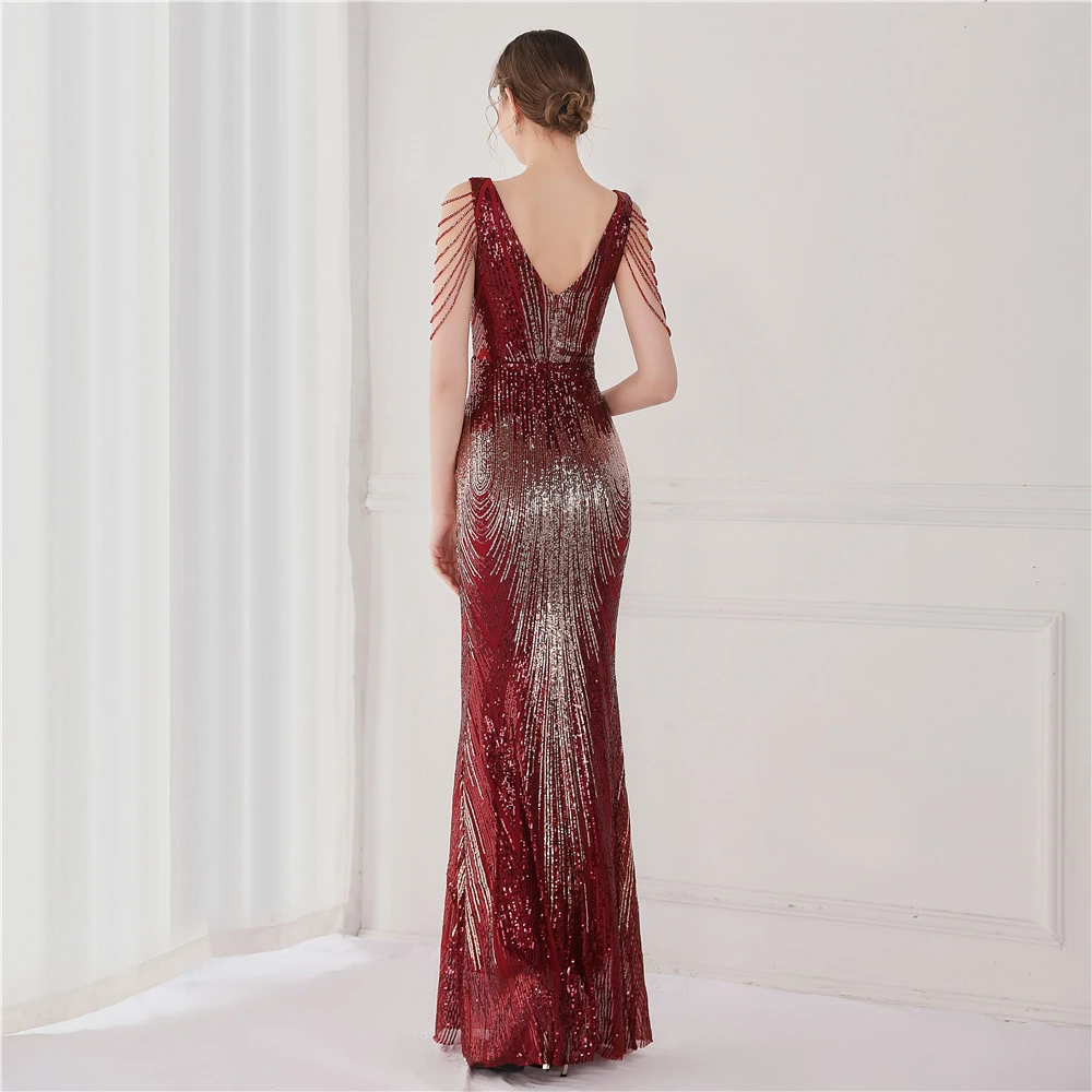 Sequin Fishtail Long Dress Performance Net Celebrity Event Banquet Car Model Etiquette Evening Dress