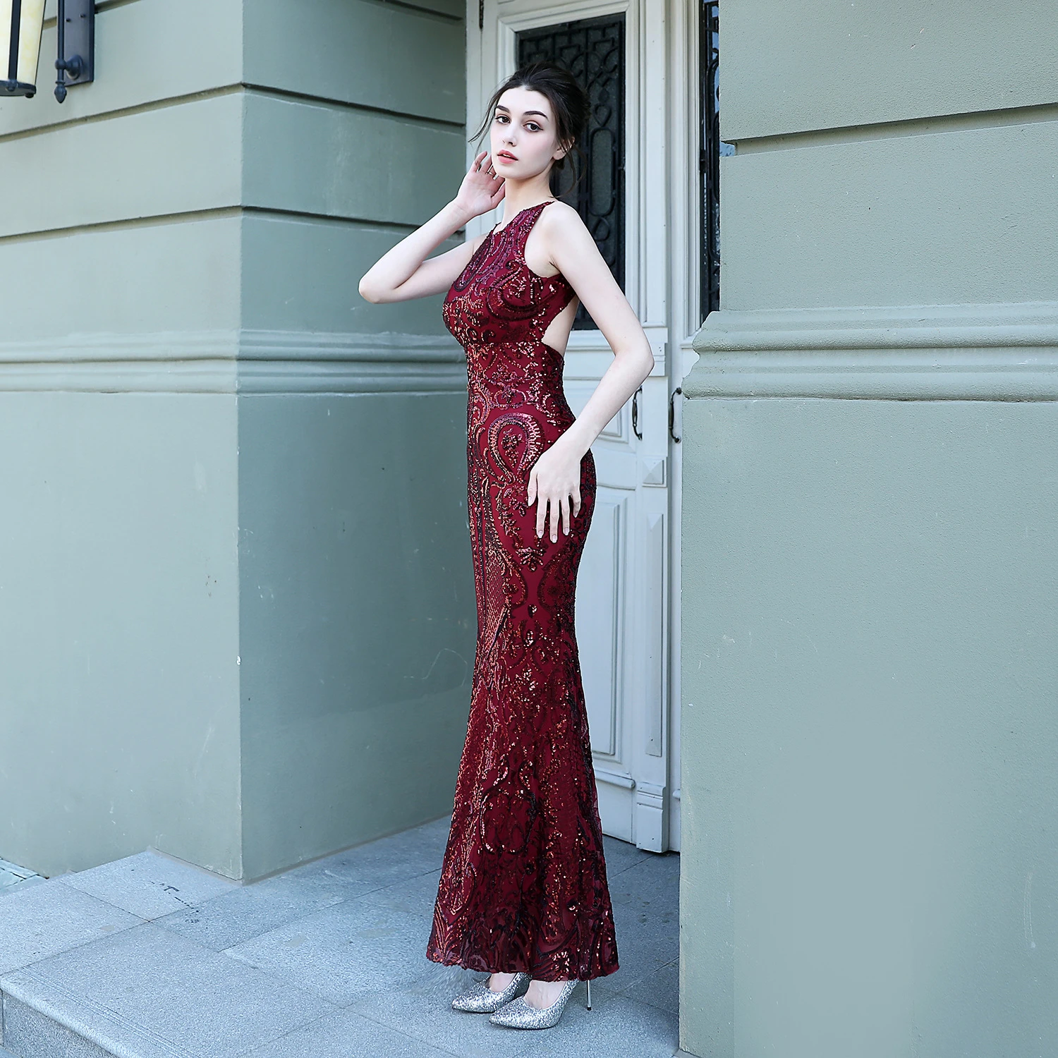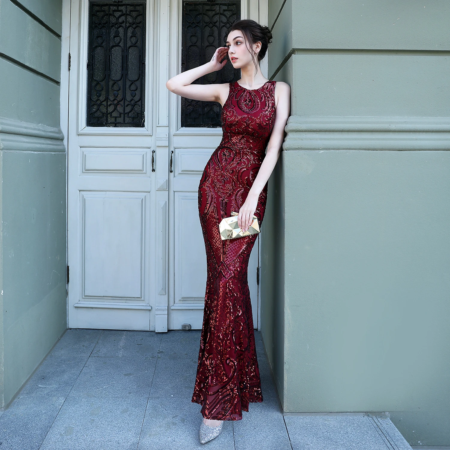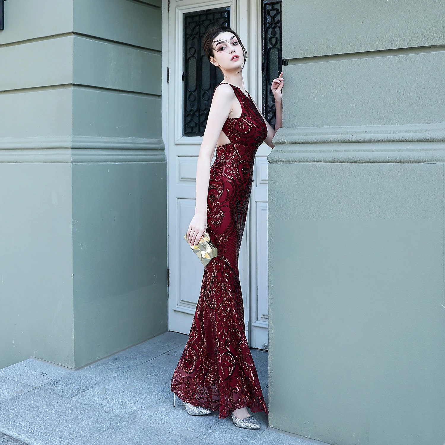 Sequin Fishtail Long Evening Dress Car Model Exhibition Performance Event Banquet Etiquette Dress