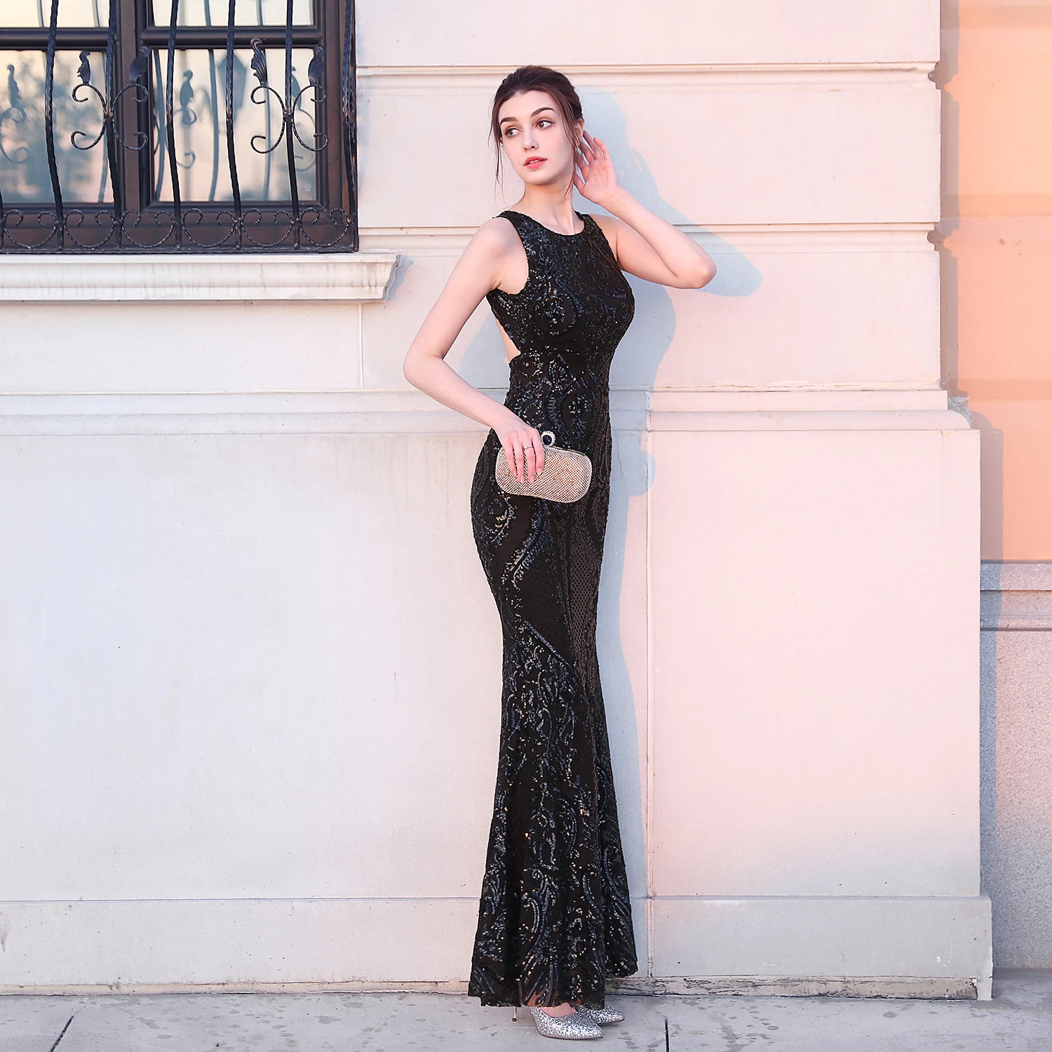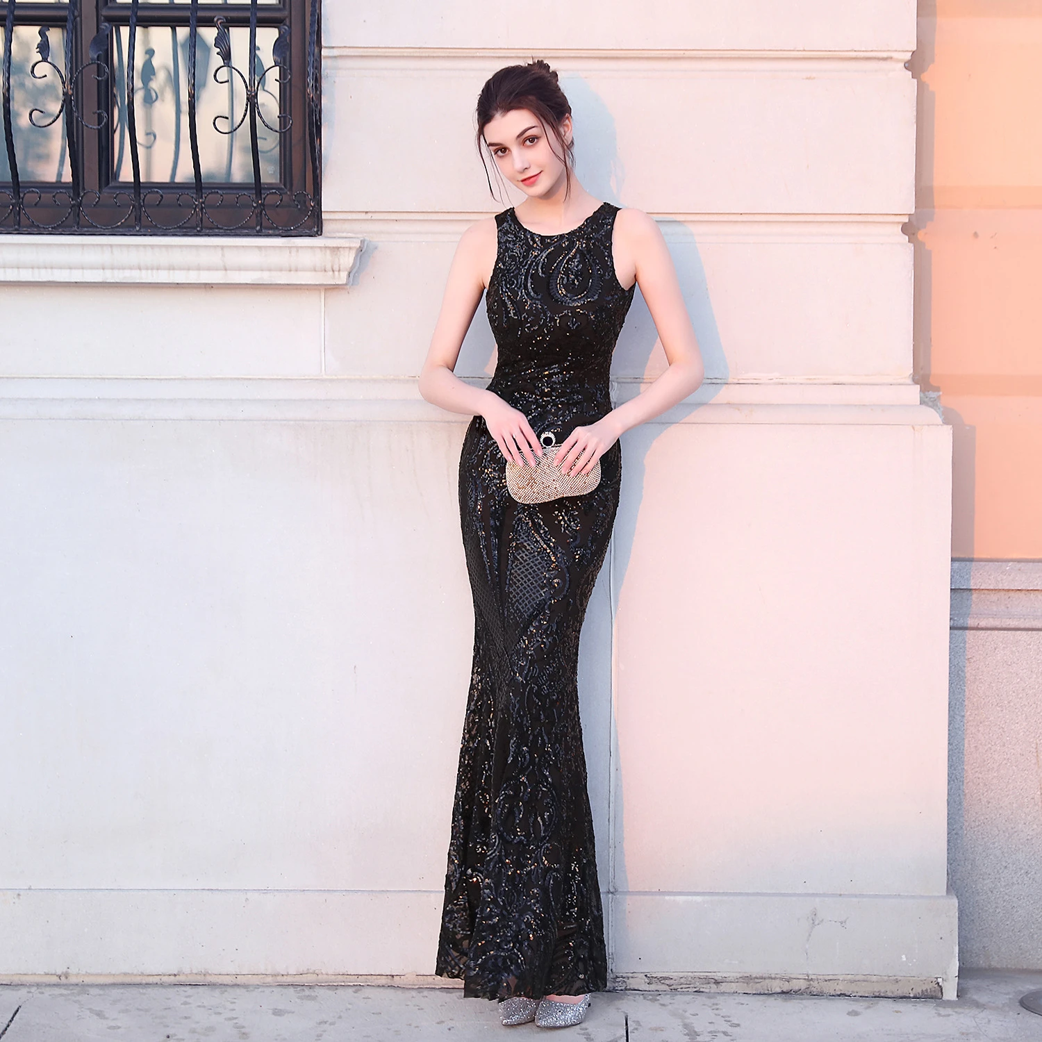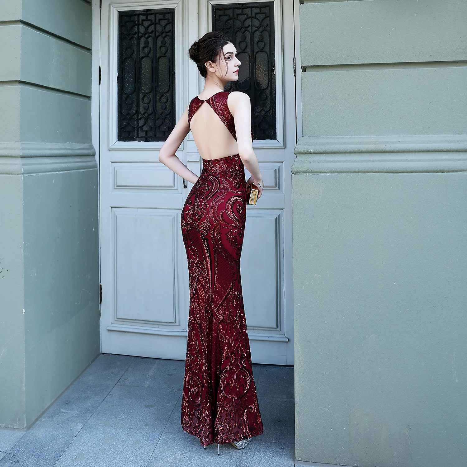Sequin Fishtail Long Evening Dress Car Model Exhibition Performance Event Banquet Etiquette Dress