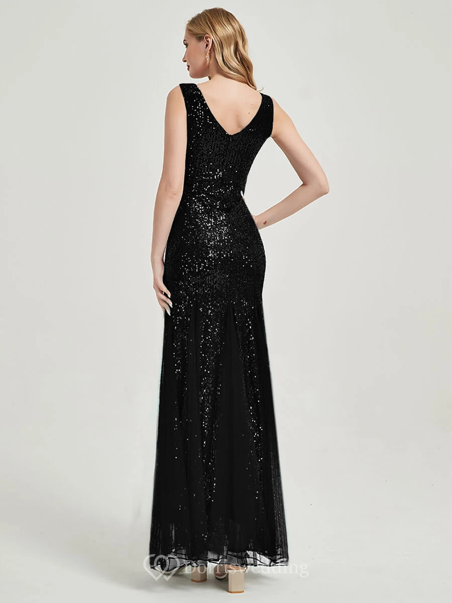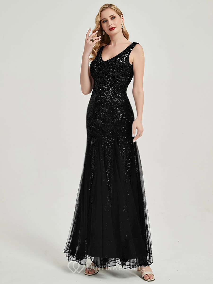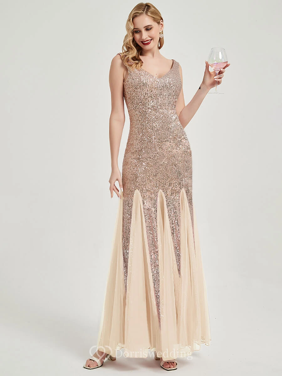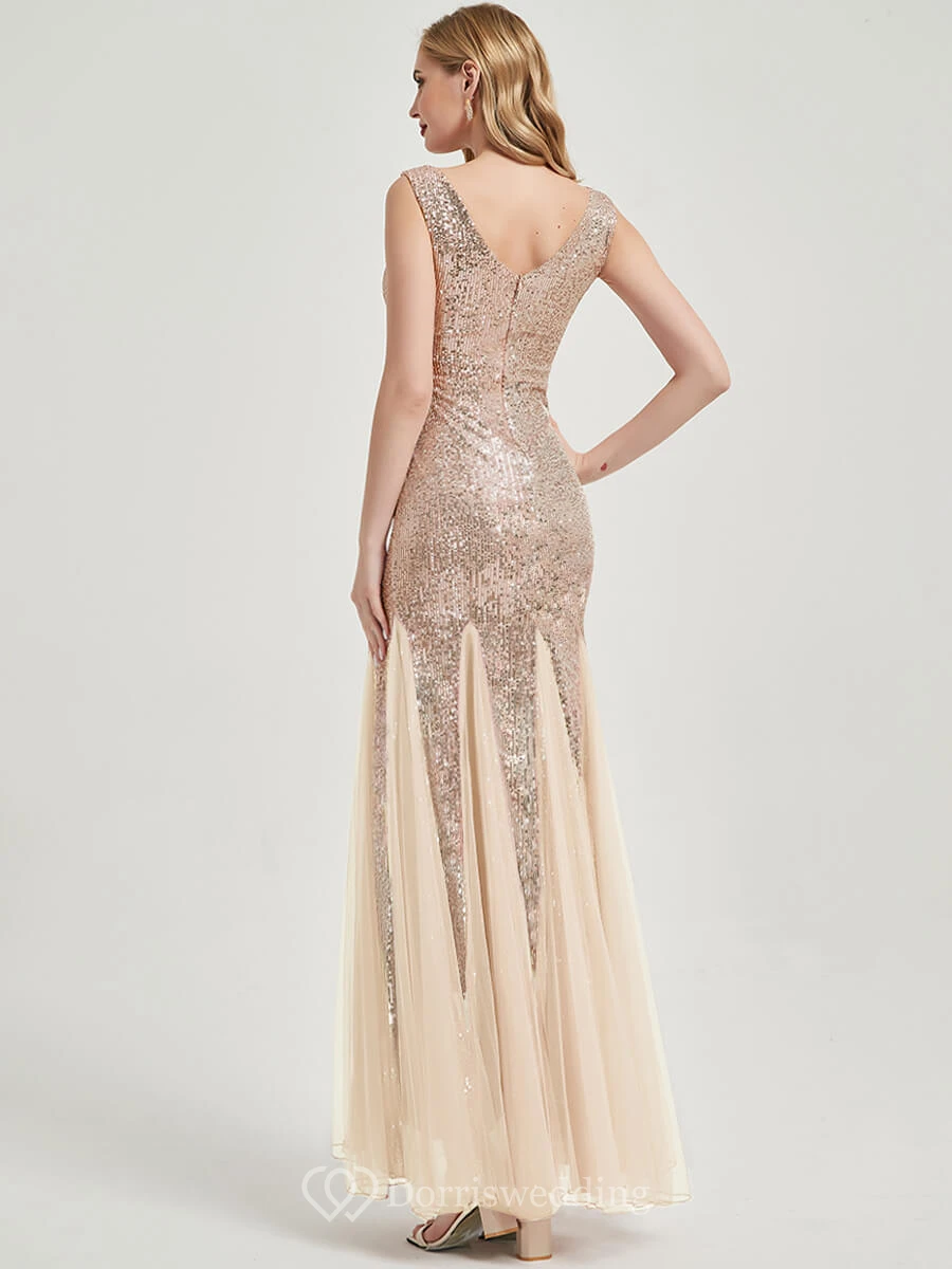 Sequin Sheath Pleated Sleeveless Party Floor-length Prom Dress