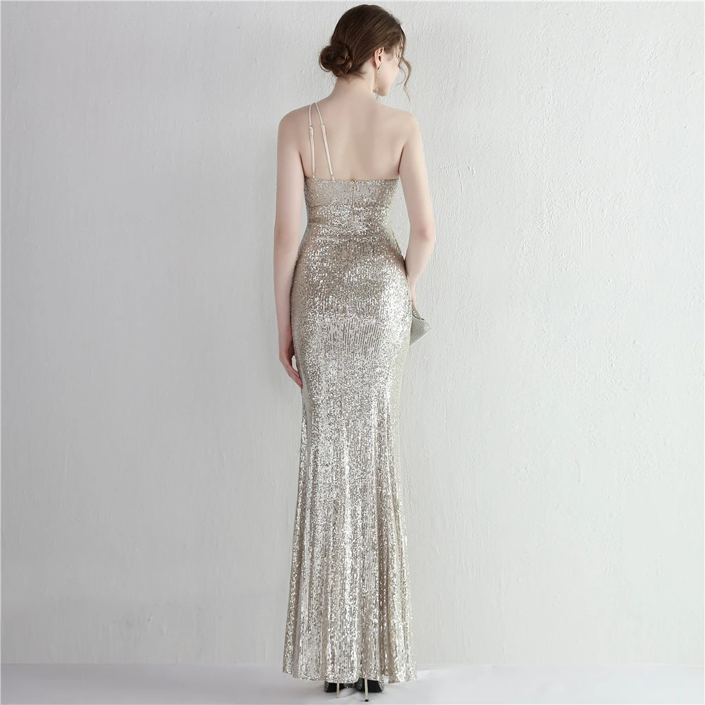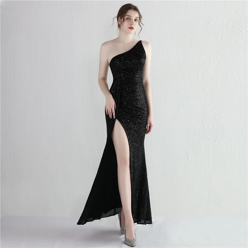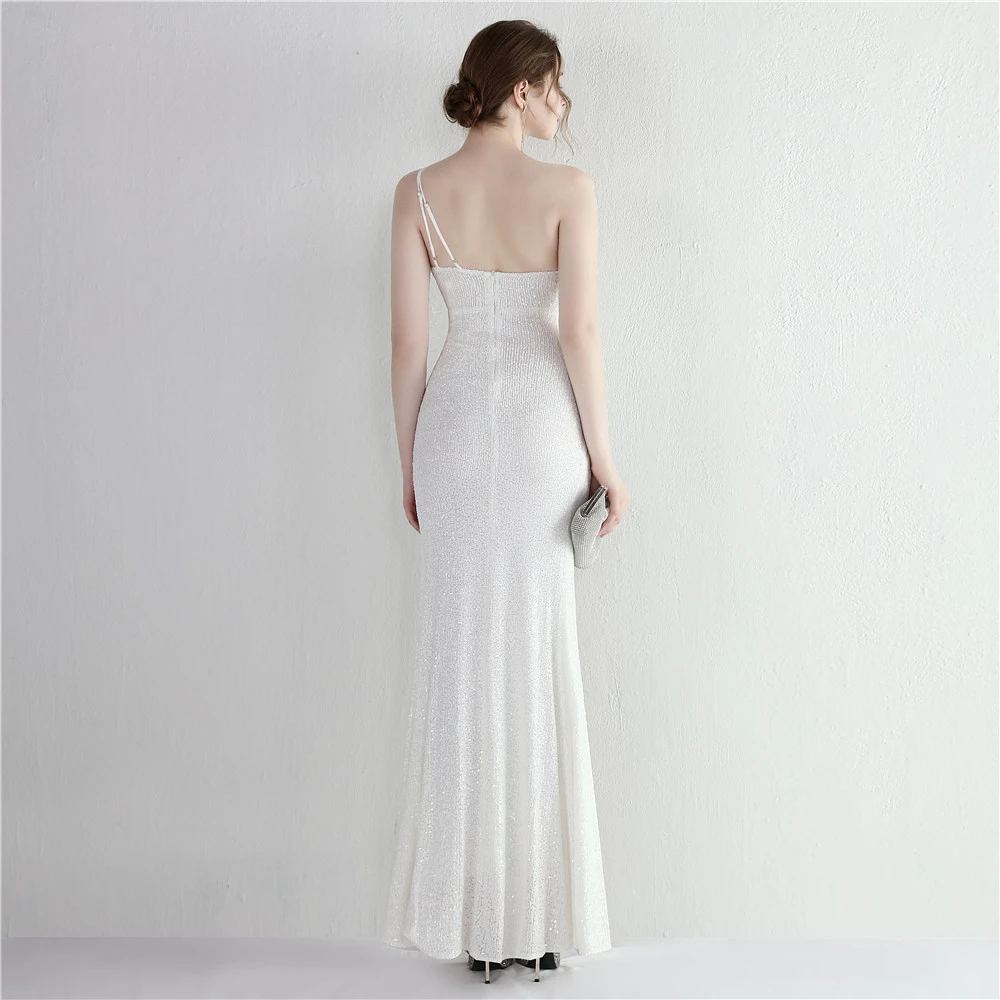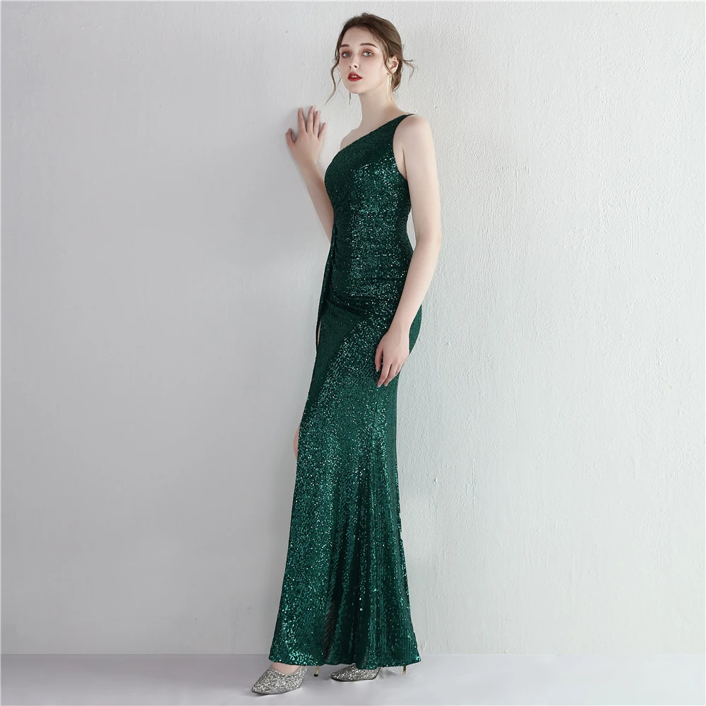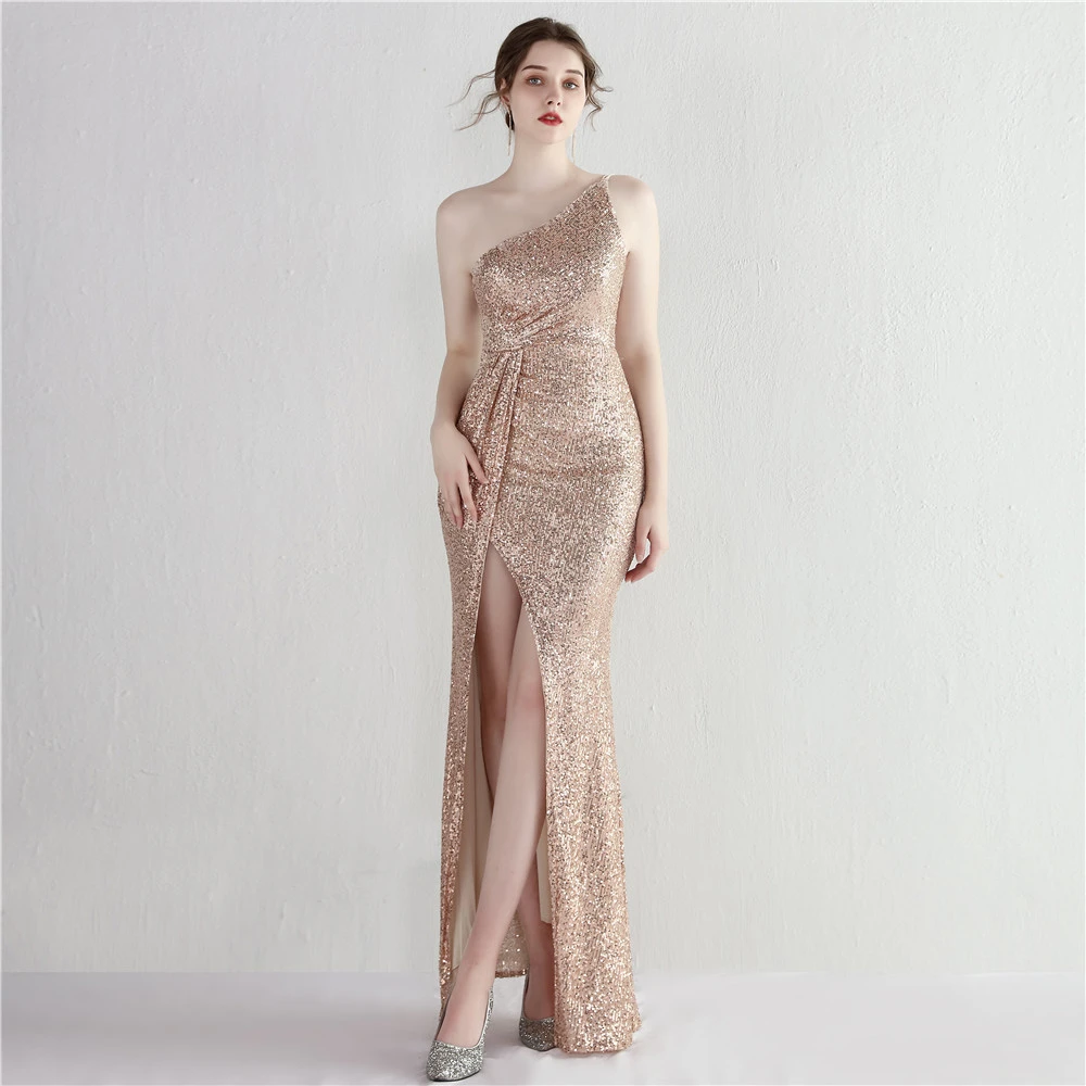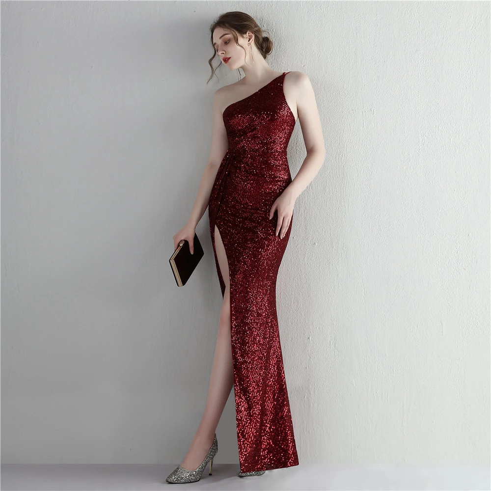Sequined One-Shoulder Celebrity Cold Banquet Slit Long Sequin Aura Queen Dinner Fishtail Dress