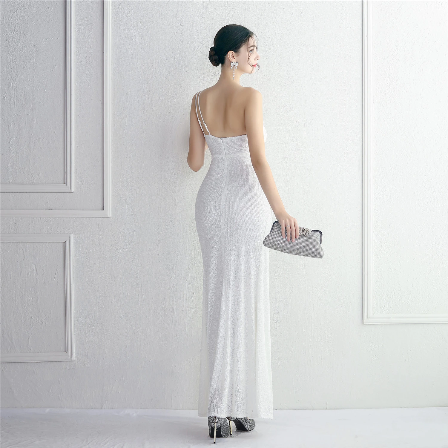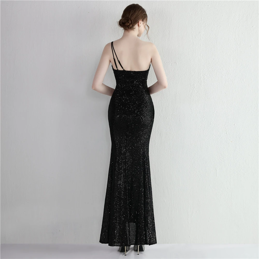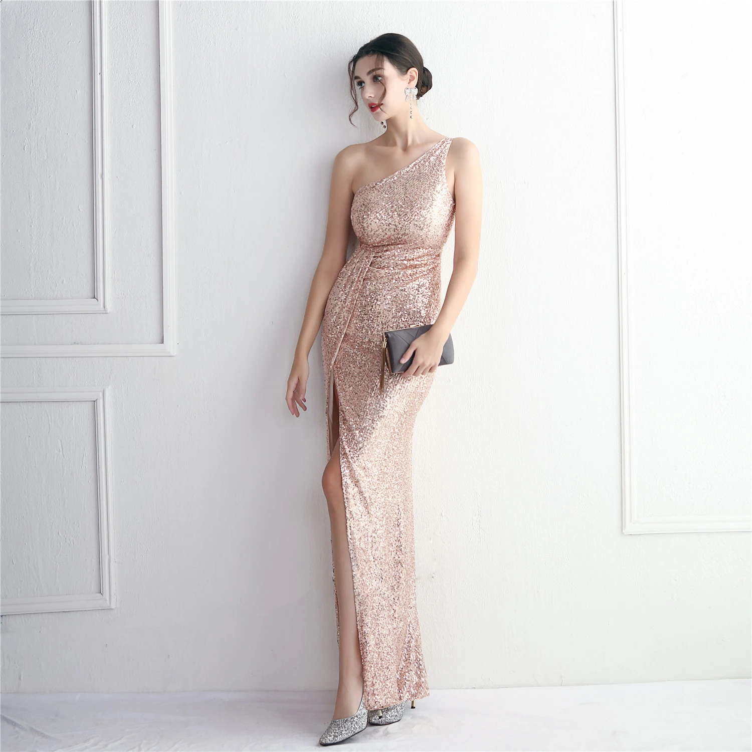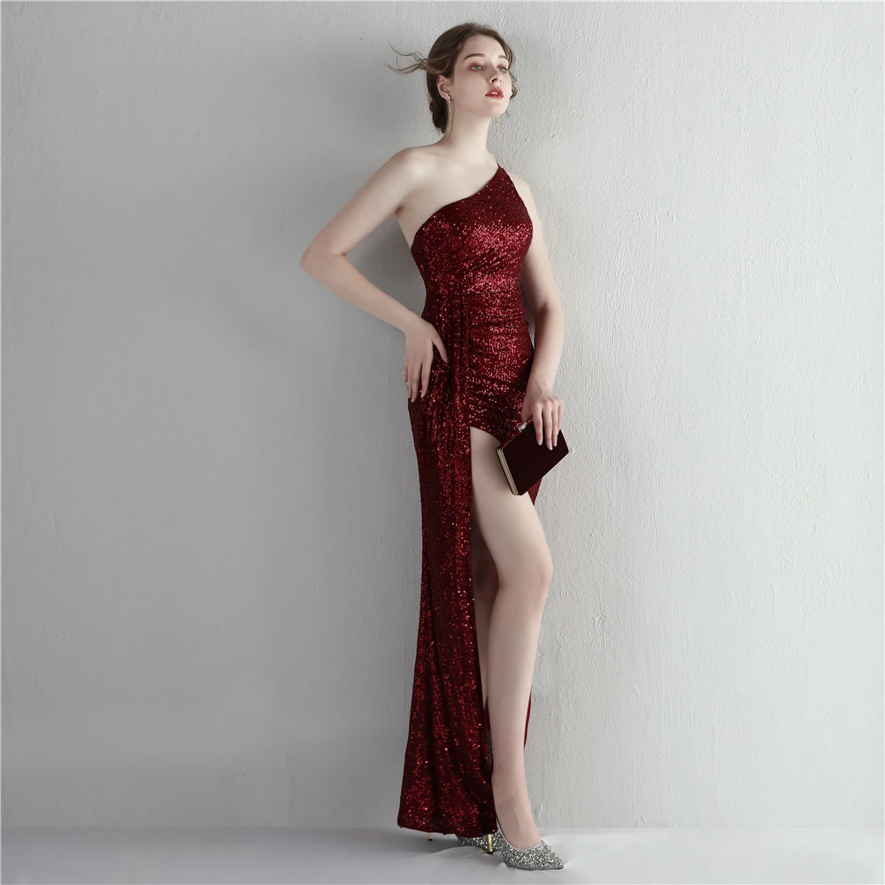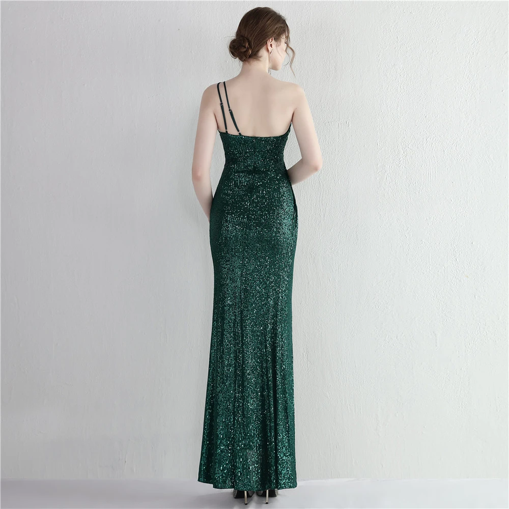 Sequined One-Shoulder Celebrity Cold Banquet Slit Long Sequin Aura Queen Dinner Fishtail Dress