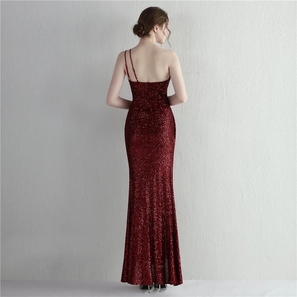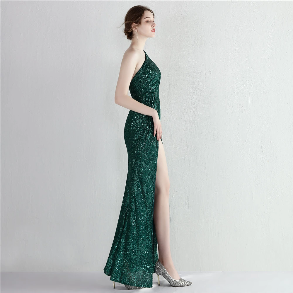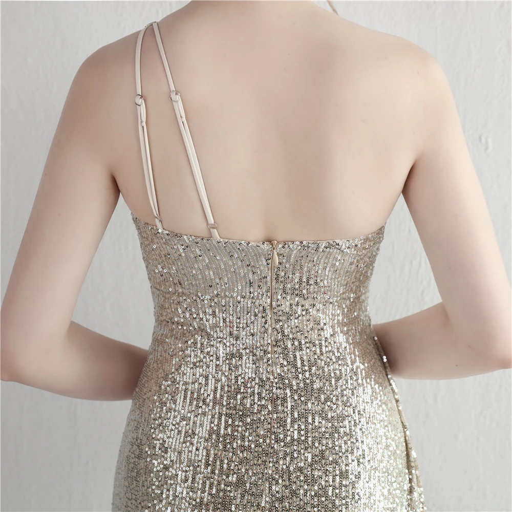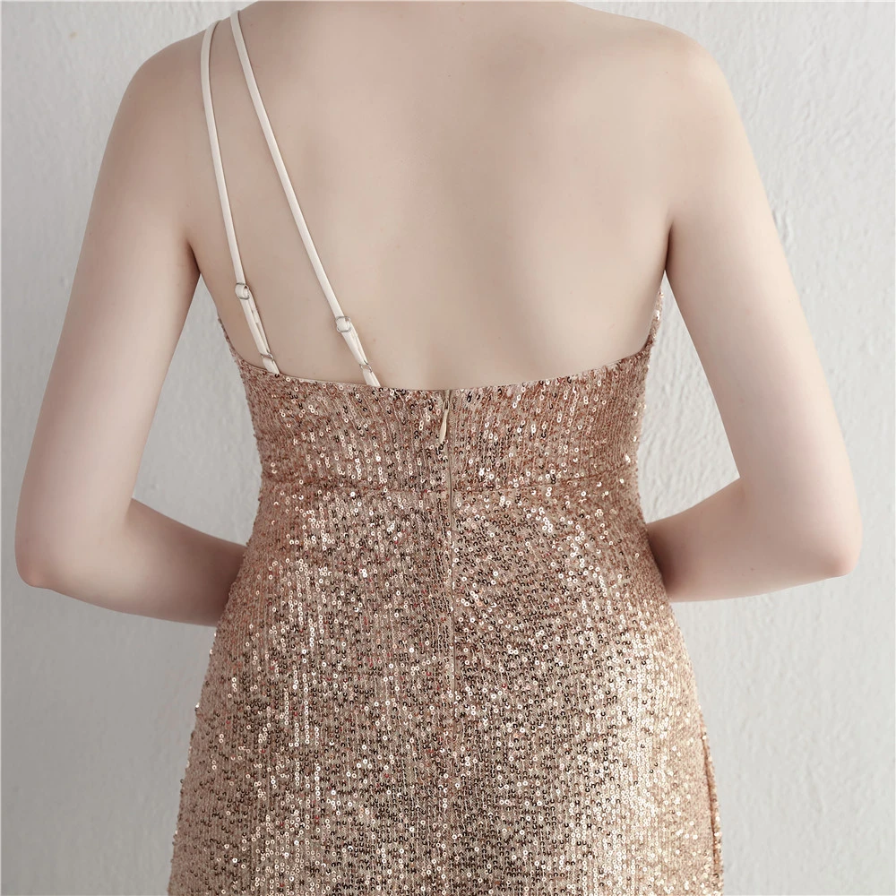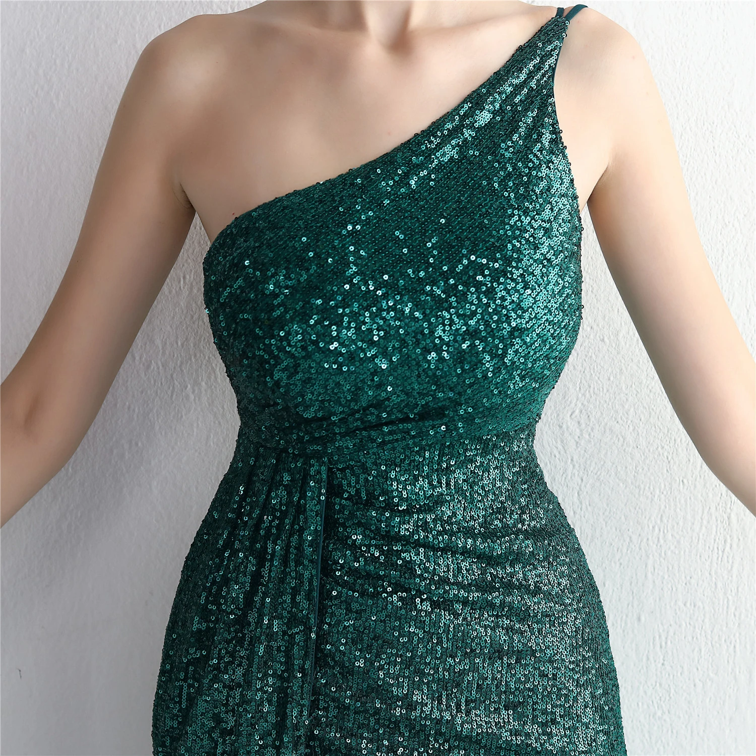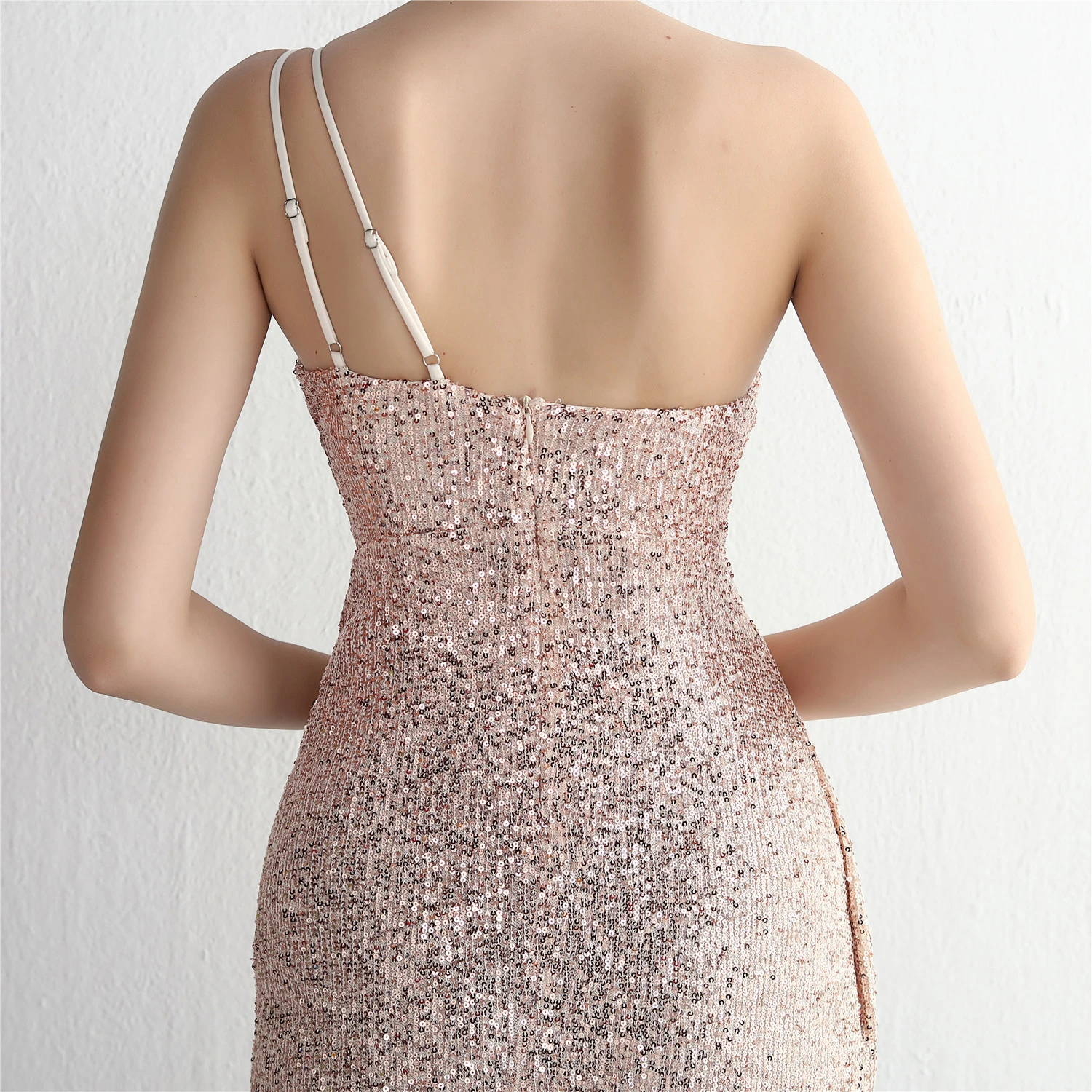 Sequined One-Shoulder Celebrity Cold Banquet Slit Long Sequin Aura Queen Dinner Fishtail Dress