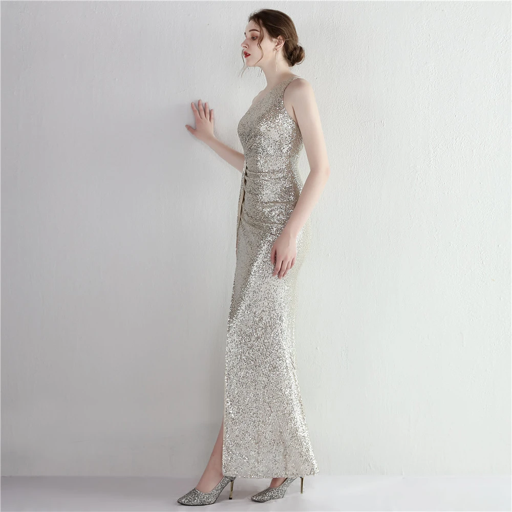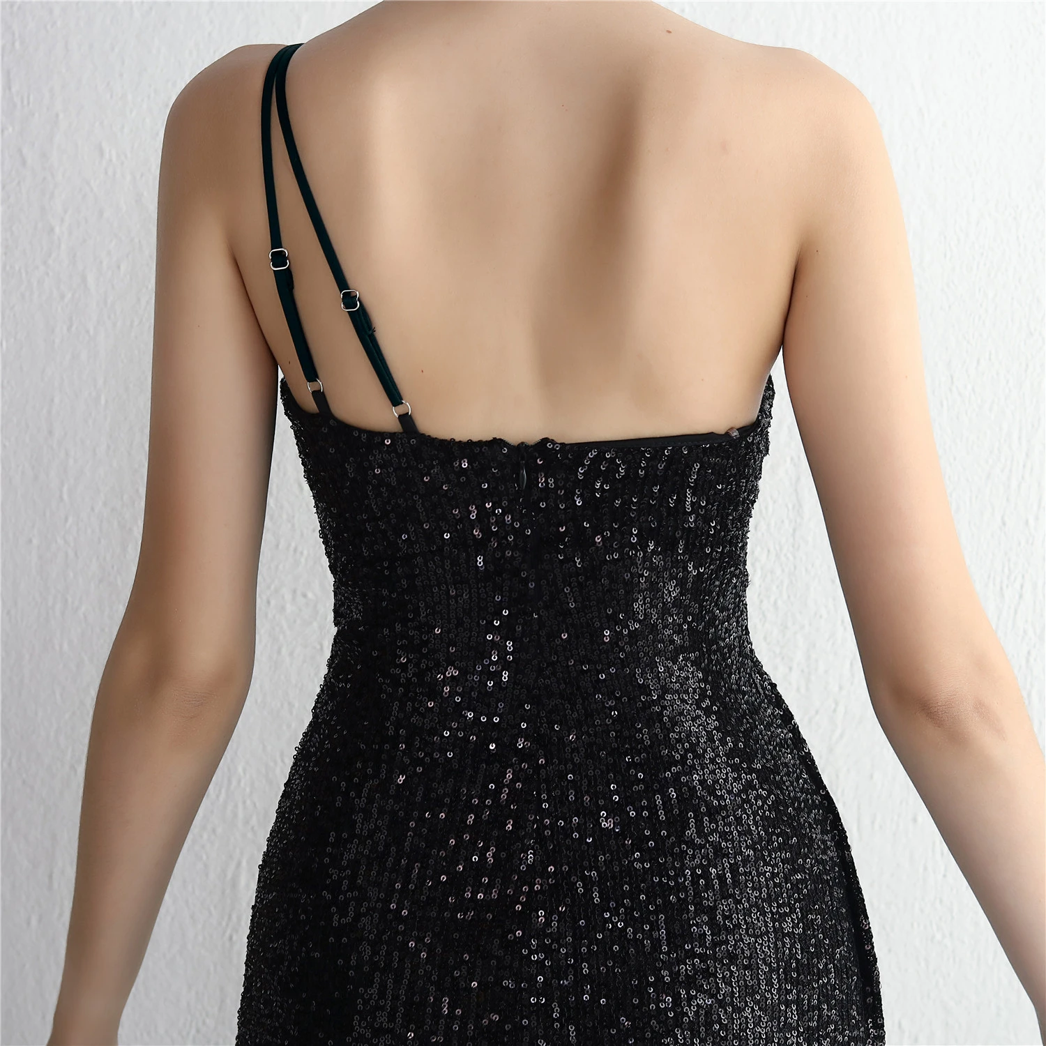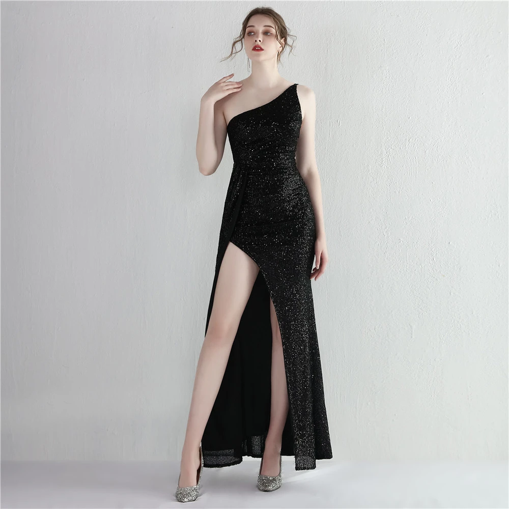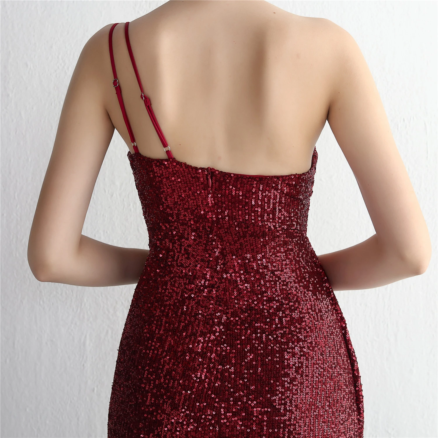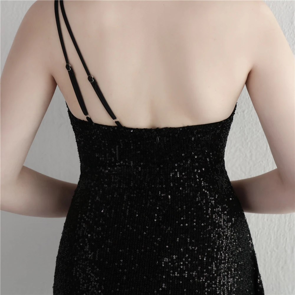Sequined One-Shoulder Celebrity Cold Banquet Slit Long Sequin Aura Queen Dinner Fishtail Dress
