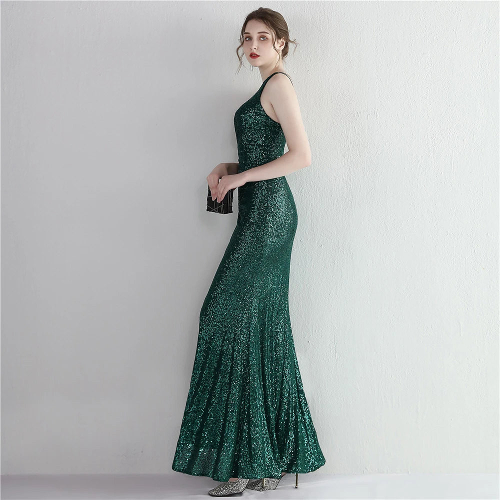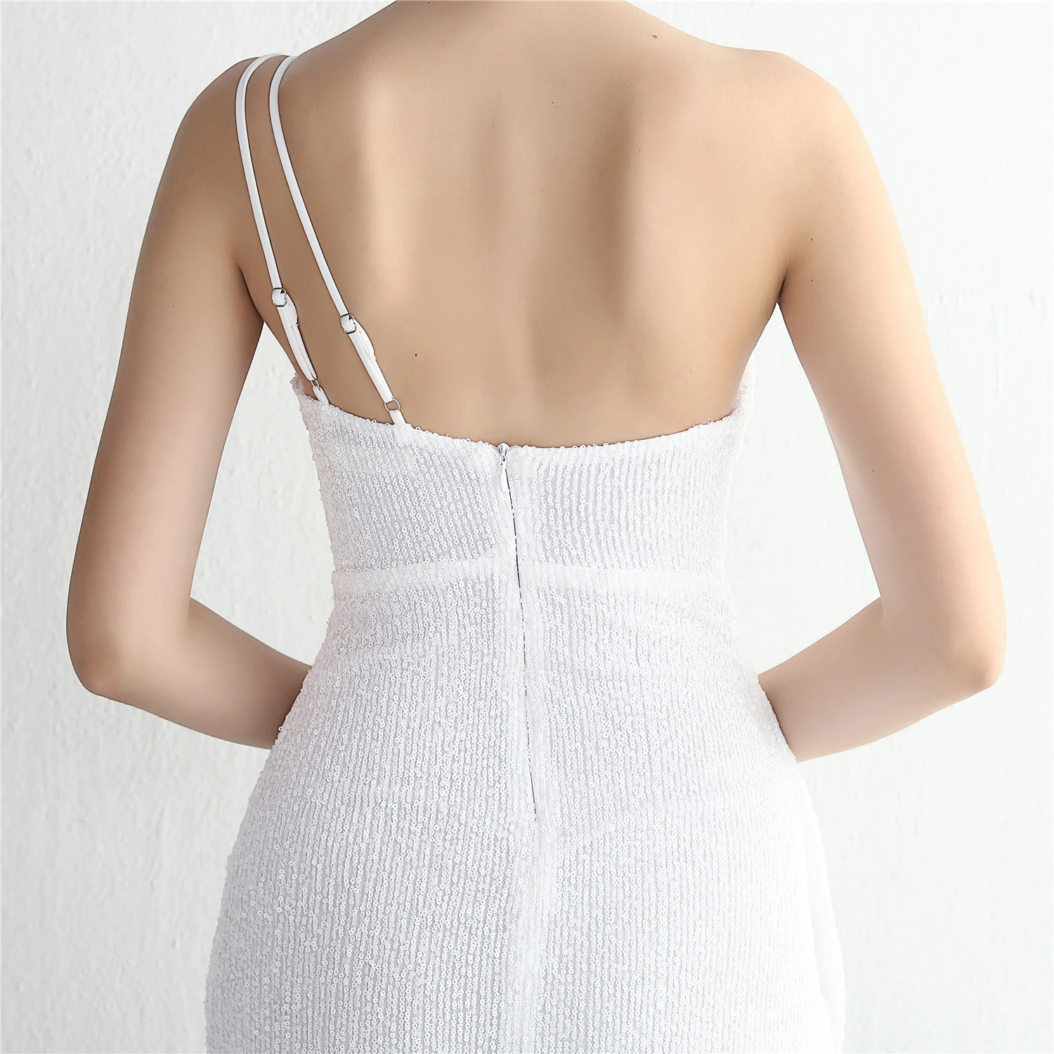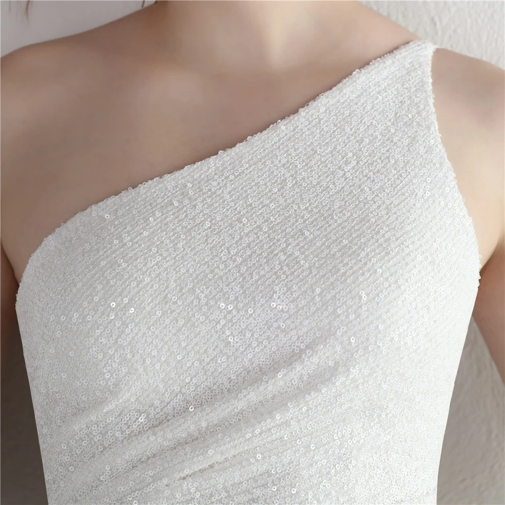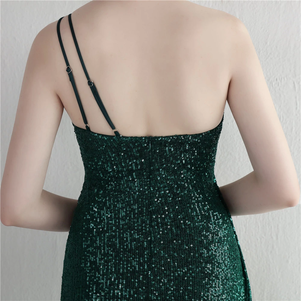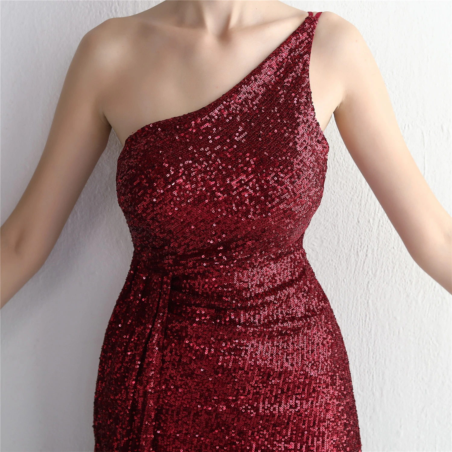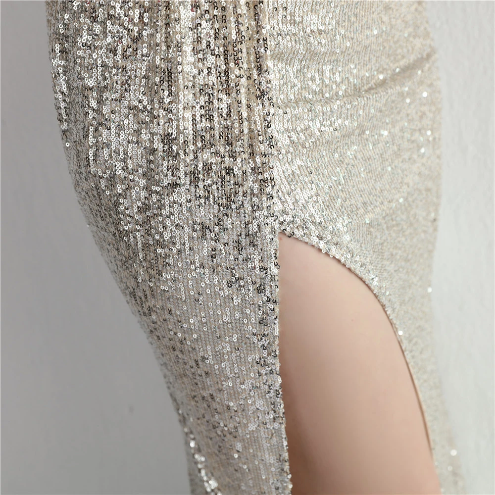 Sequined One-Shoulder Celebrity Cold Banquet Slit Long Sequin Aura Queen Dinner Fishtail Dress