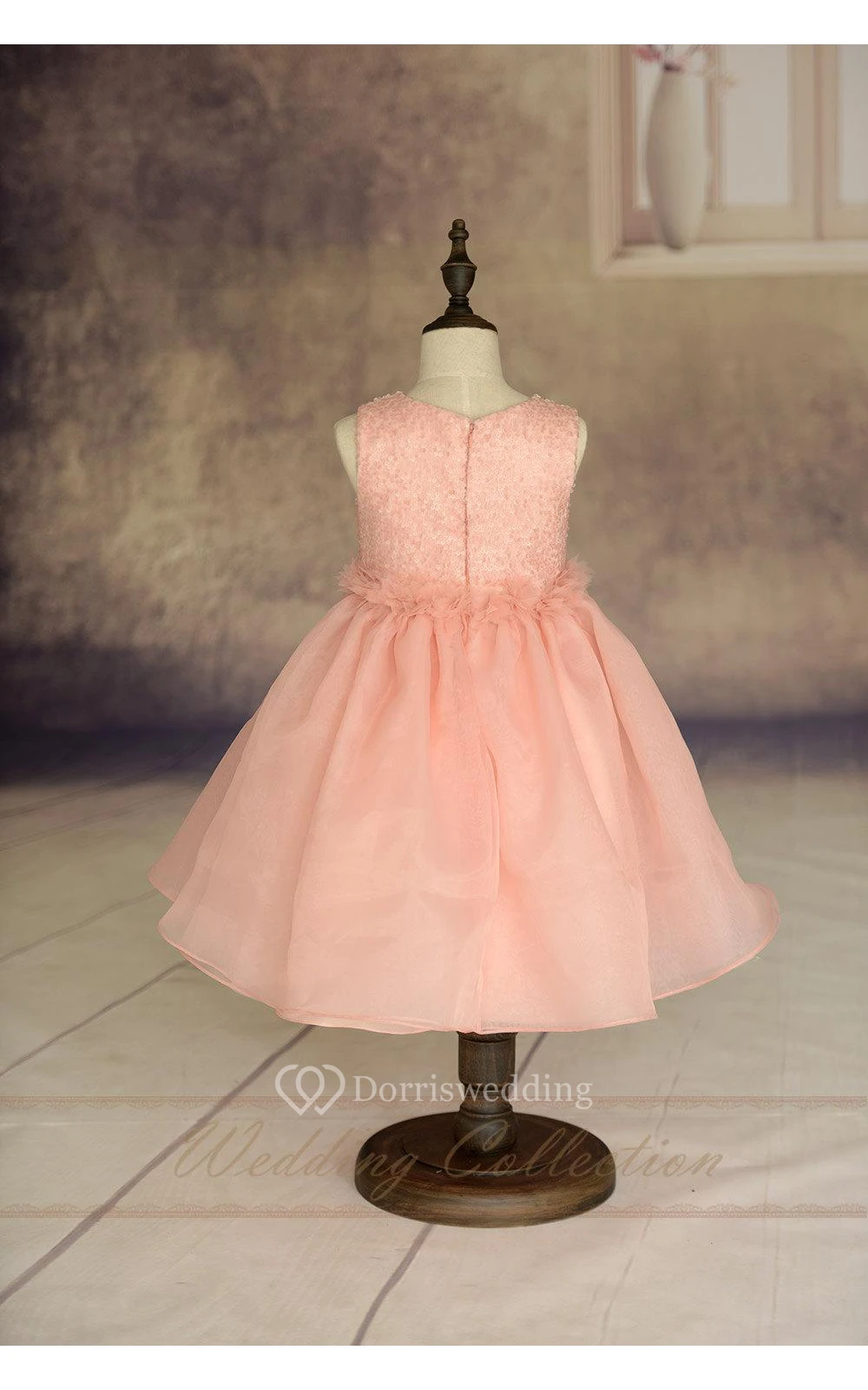 Sequined Scoop Neck Sleeveless Tea Length Organza Dress Floral Waist
