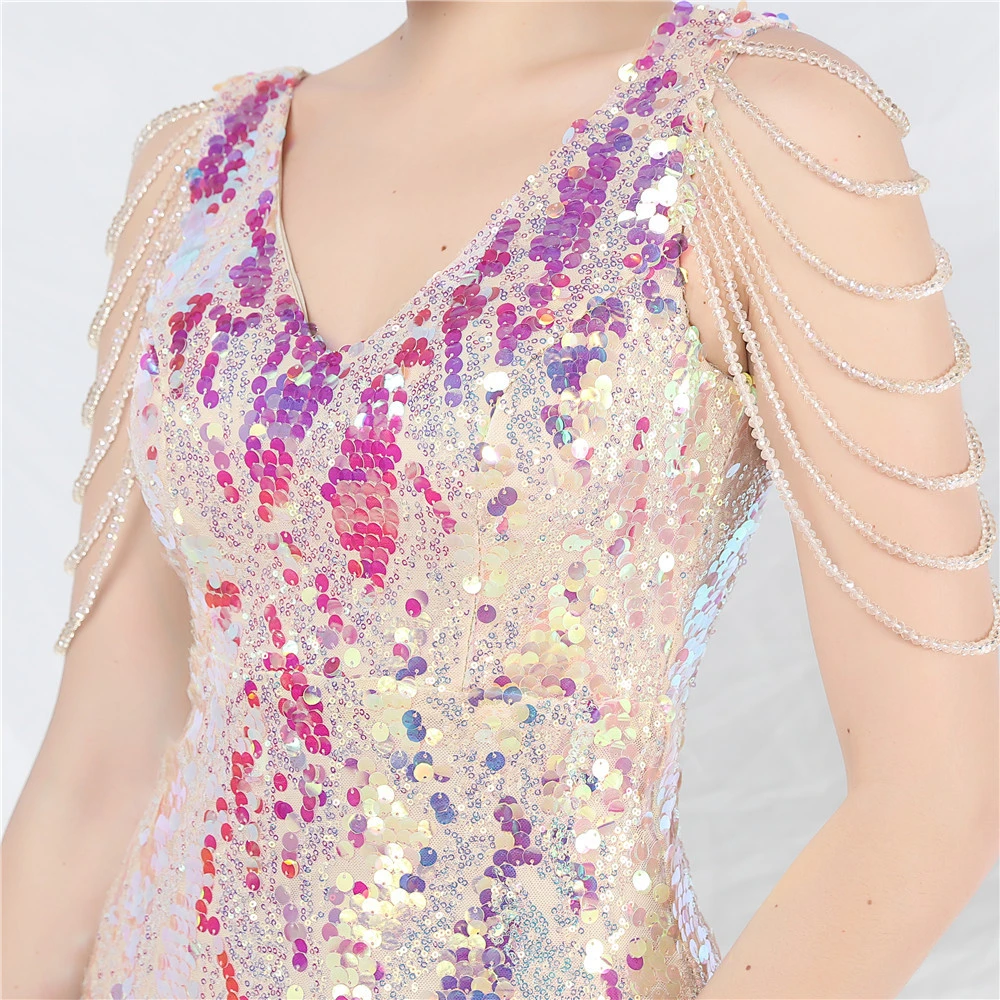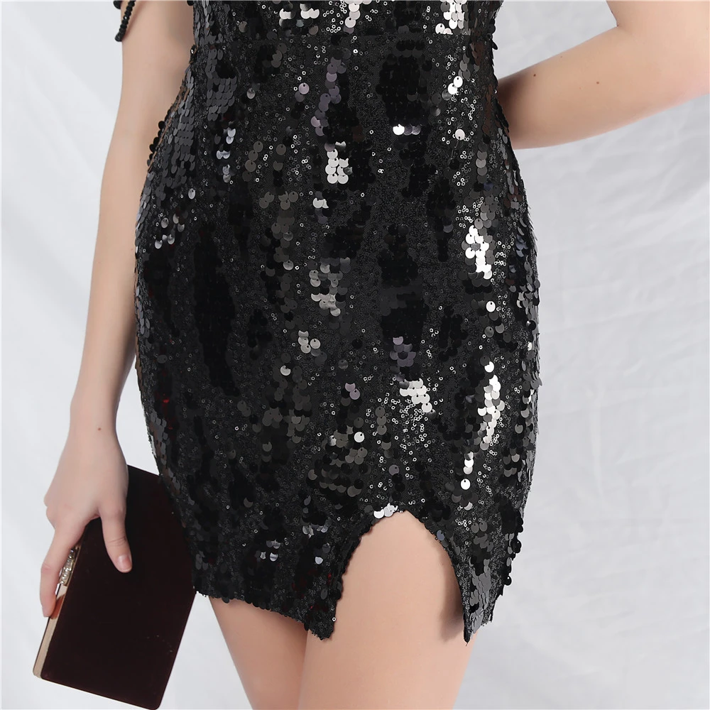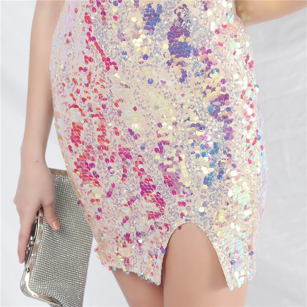 Sequined Short Dress Crafted Beaded Iridescent Sequined Daily Small Dress Short Skirt