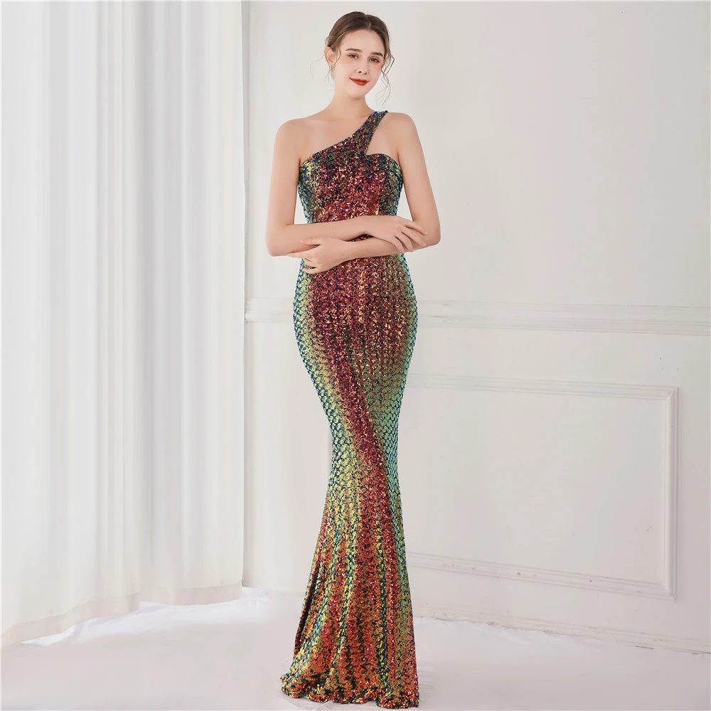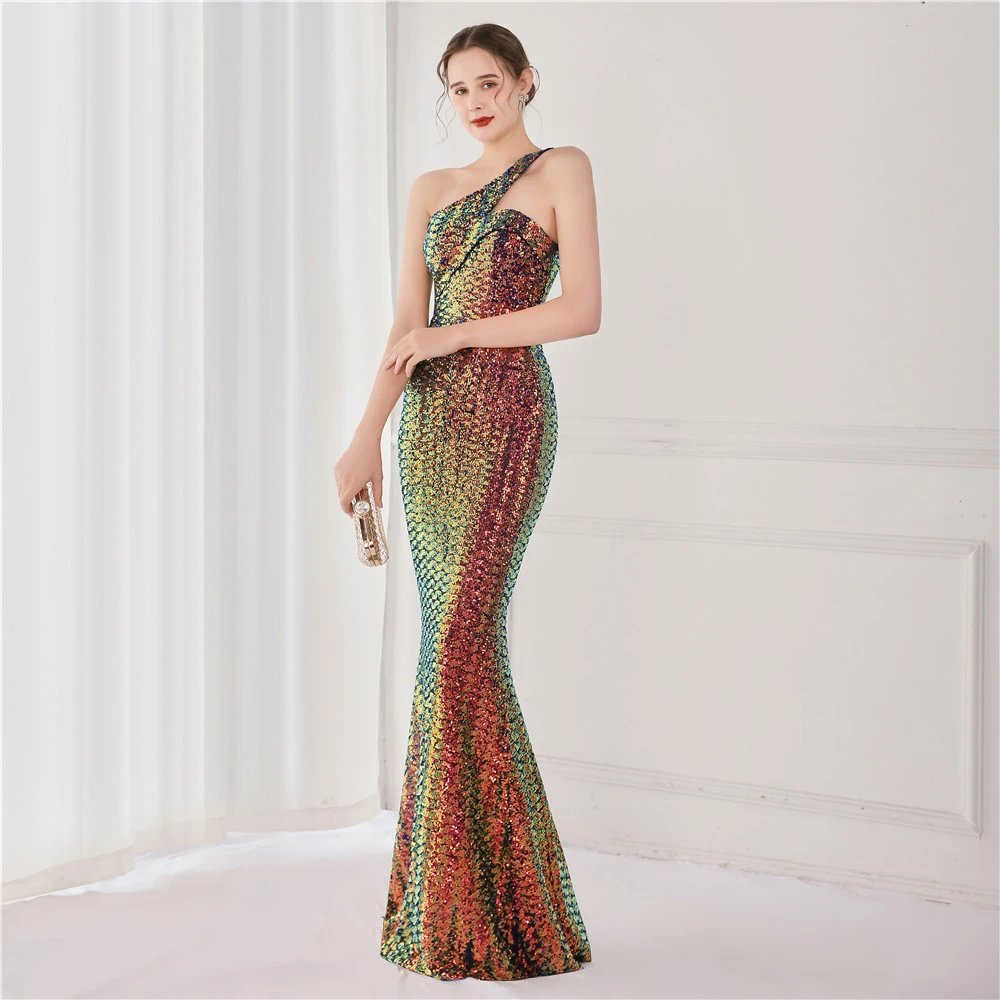 Sequins 8 Colors Dream Celebrity Party Party Evening Dress Sexy Long Toast Dress Host Dress
