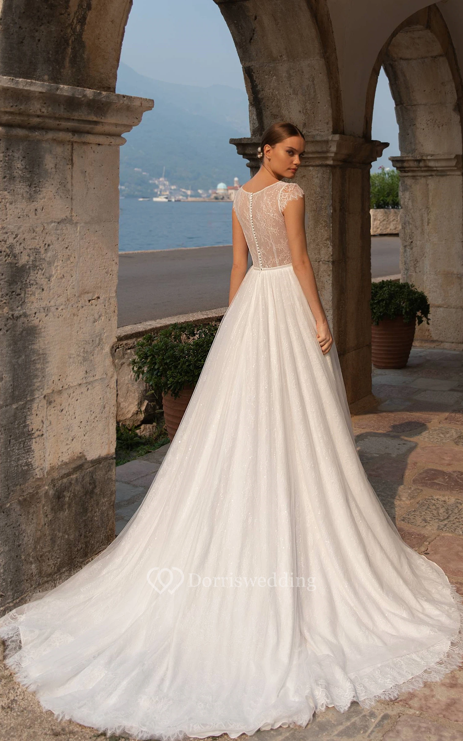 Sexy A Line Court Train Tulle Wedding Gown with Ruching
