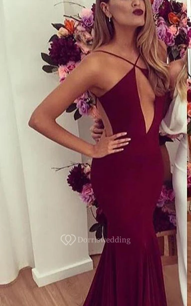 Sexy Backless Mermaid Burgundy Prom Dresses Floor Length