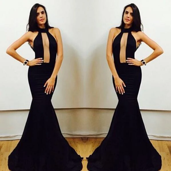 Sexy Black High-Neck Mermaid Prom Dresses Floor Length Evening Gowns