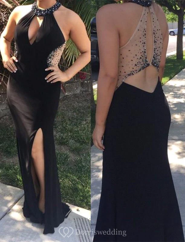 Sexy Black Keyhole Prom Dresses Long Slit Floor Length