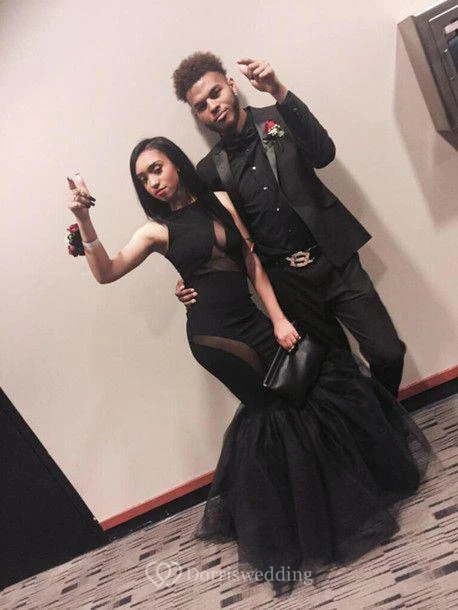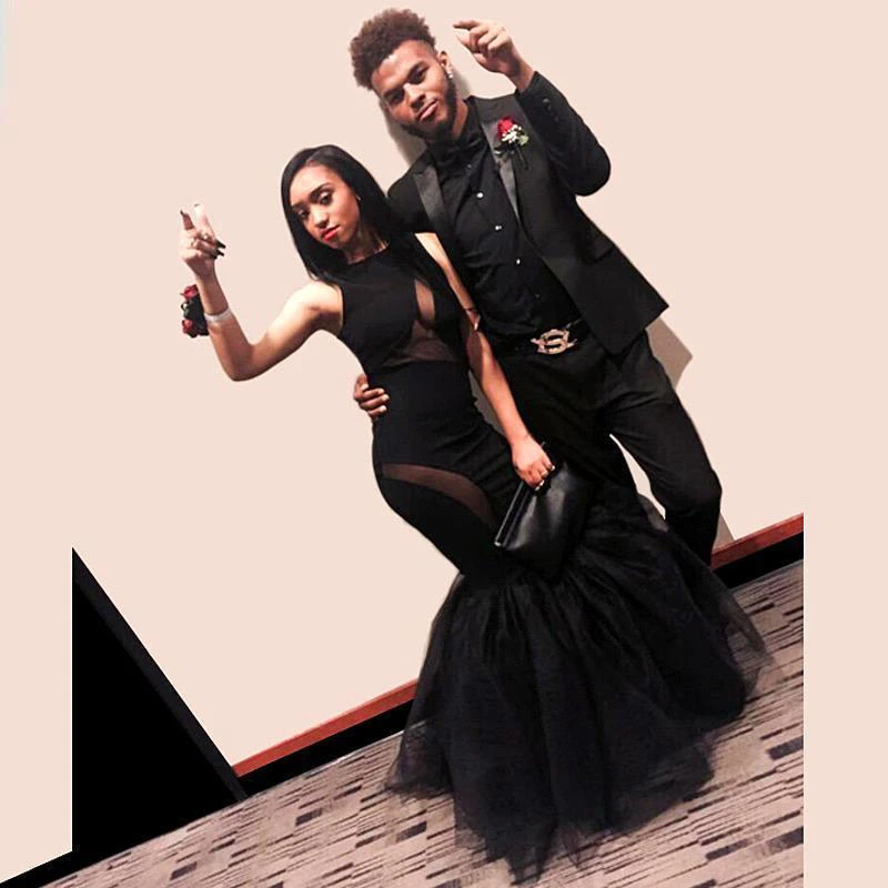 Sexy Black Sleeveless Prom Dresses Mermaid Tulle Party Gowns