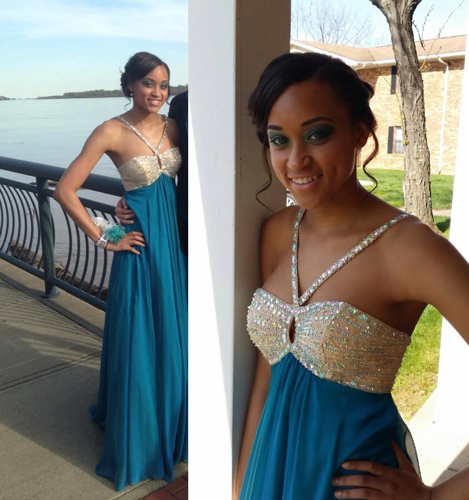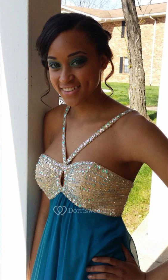 Sexy Chiffon Beadings Sequins Prom Dress A-line Sleeveless