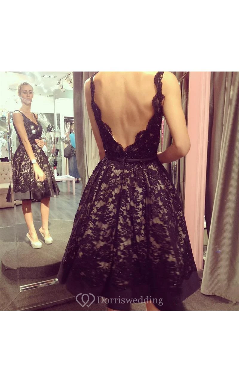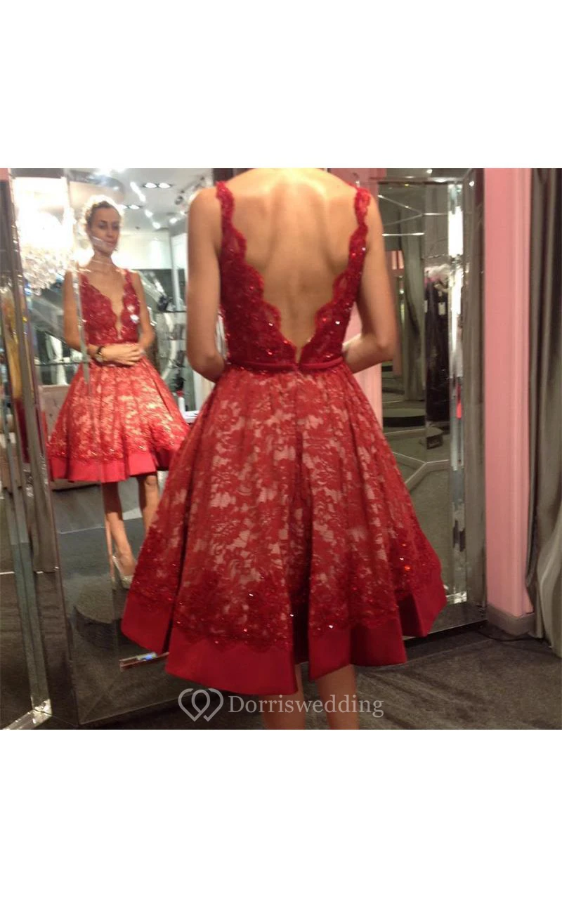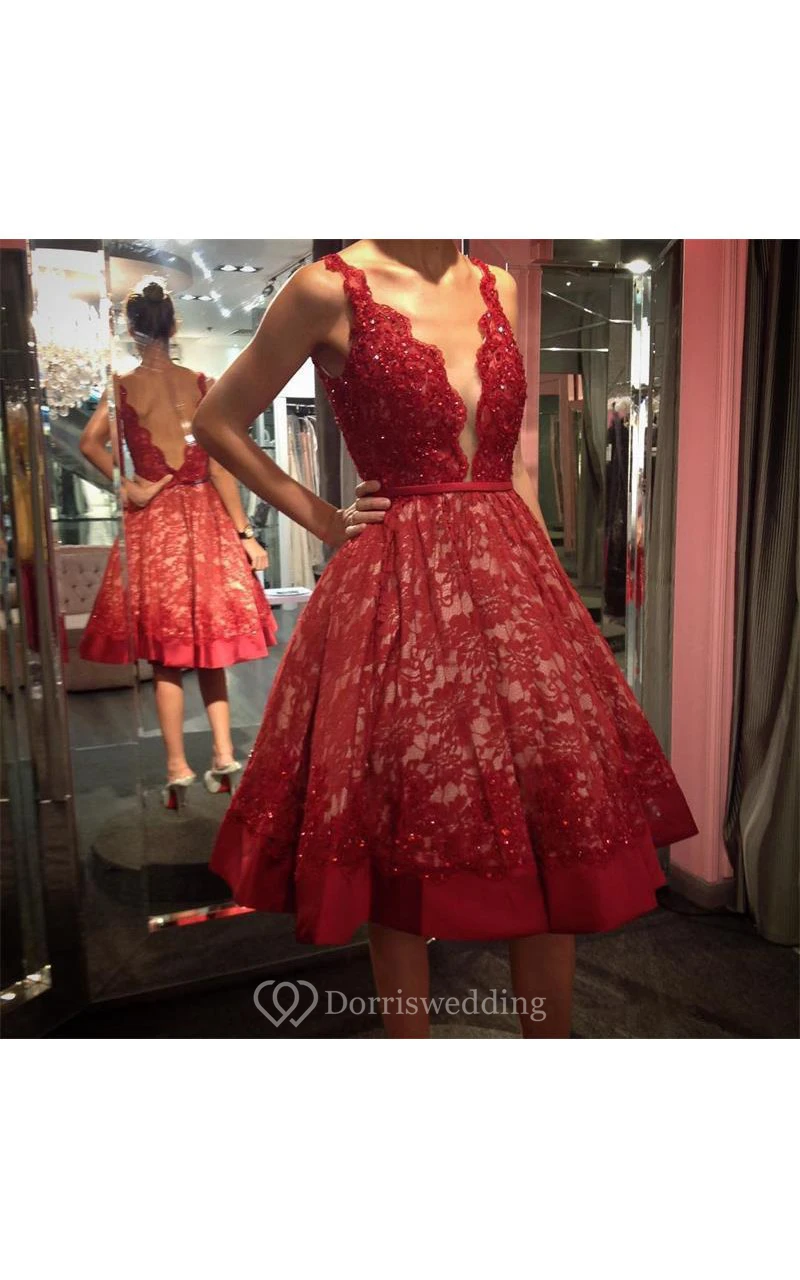 Sexy Deep V Neck Low Back Lace Knee Length Dress