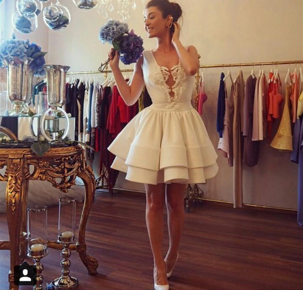 Sexy Deep V-neck Short Cocktail Dress With Ruffles Appliques