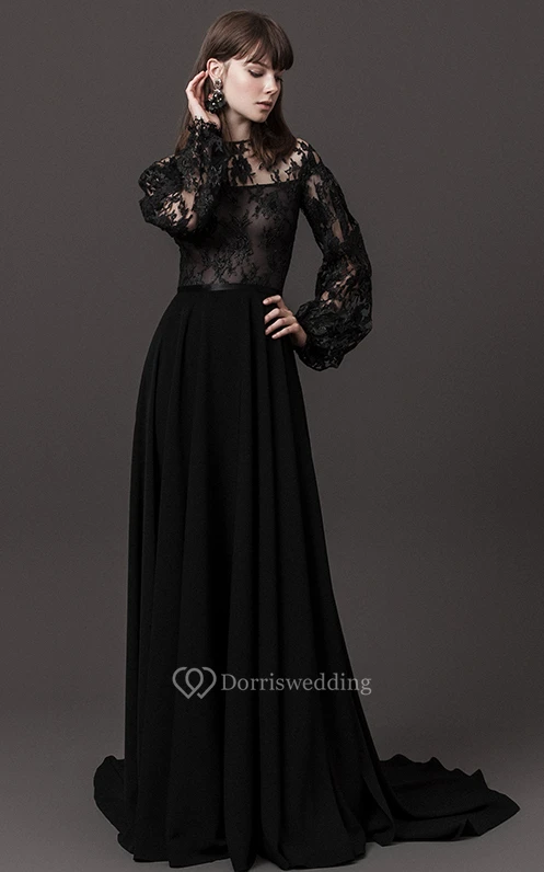 Sexy Floor-length Long Sleeve Chiffon A Line Guest Dress with Ruching