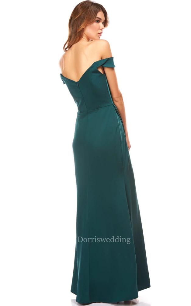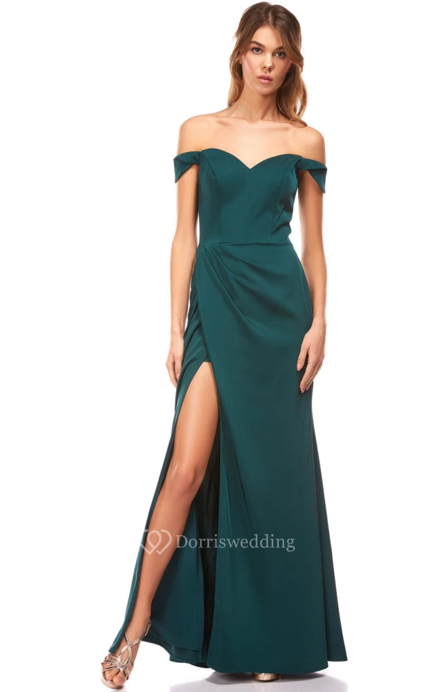 Sexy Floor-length Short Sleeve Satin A Line Guest Dress with Split Front
