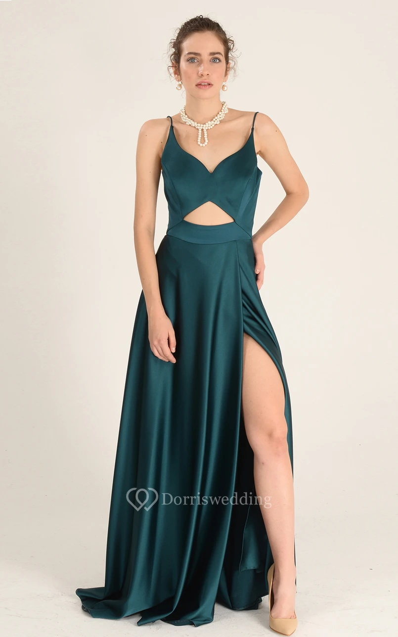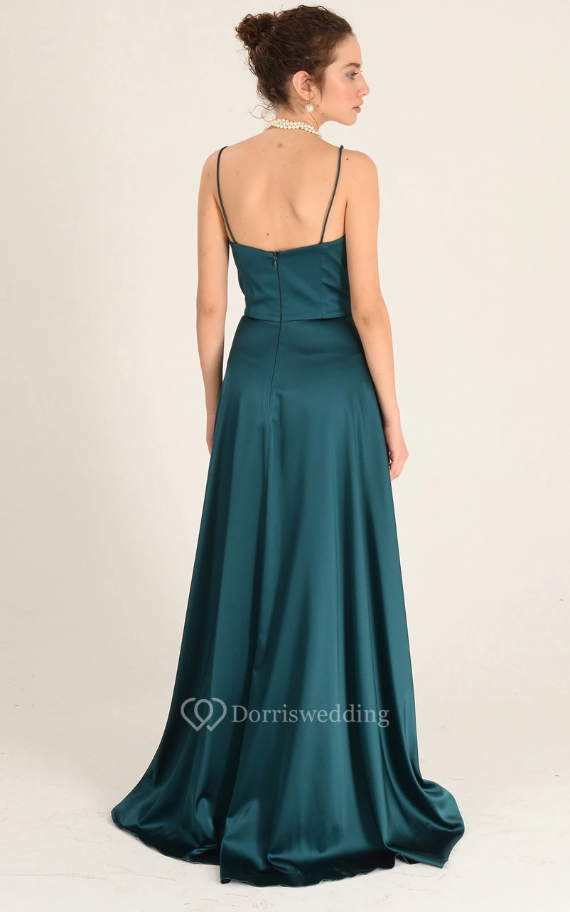 Sexy Floor-length Sleeveless Satin A Line Zipper Formal Dress with Split Front