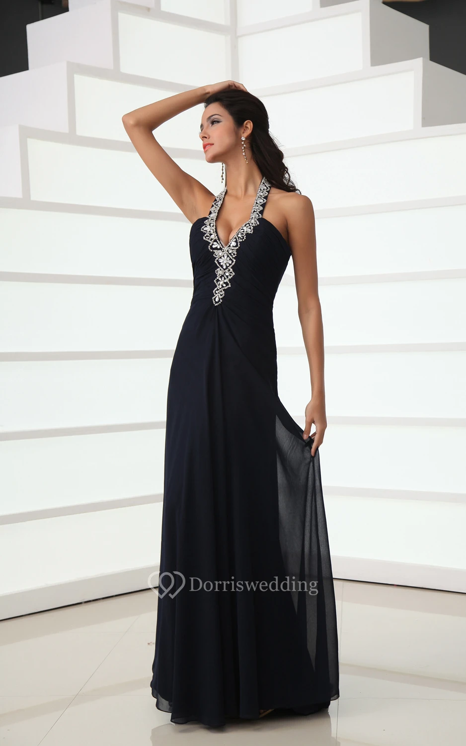 Sexy Halter A-Line Chiffon Gown With Back Crystal Strap
