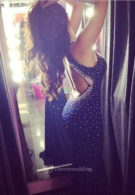 Sexy Halter Mermaid Black Prom Dress Sleeveless With Beadings