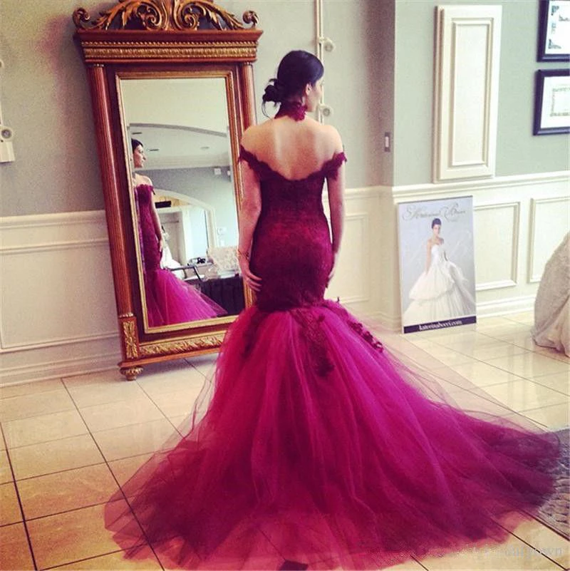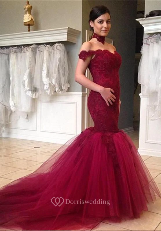 Sexy High Neck Tulle Mermaid Wedding Dress Lace Appliques Sweep Train