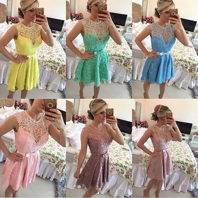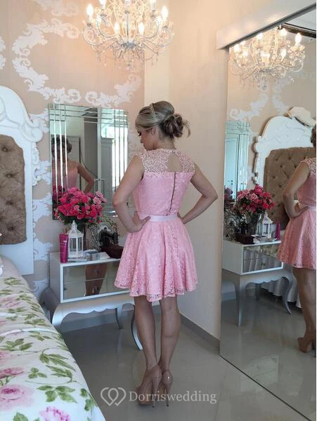 Sexy Illusion Short A-line Cocktail Dress Lace Bowknot
