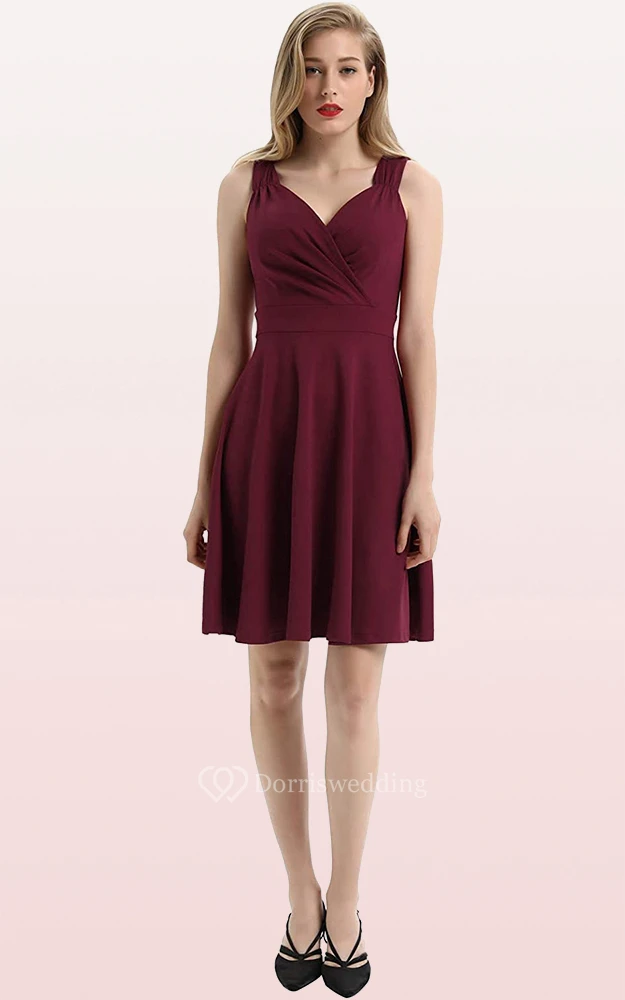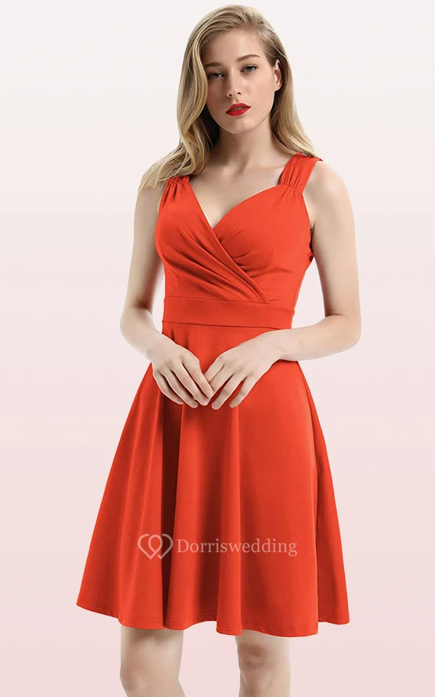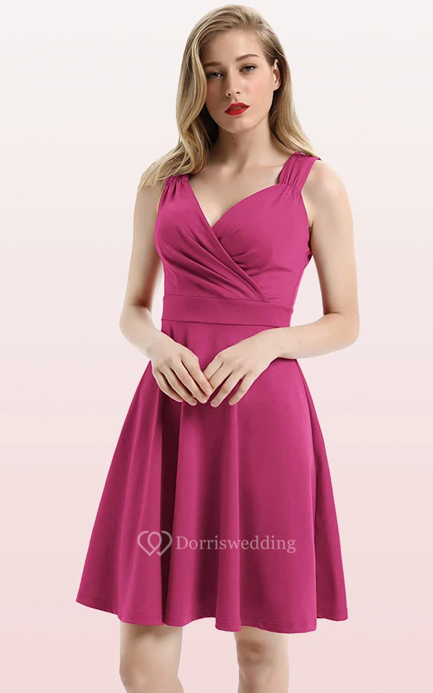 Sexy Jersey V-neck A Line Sleeveless Prom Guest Dress With Ruffles