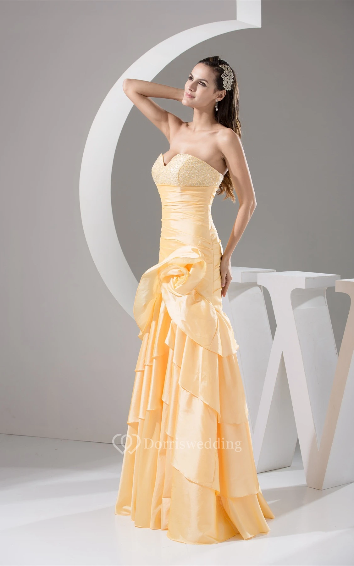 Sexy Jeweled Sweetheart Bodice Dress With Layered Ruffles and Zipper Back