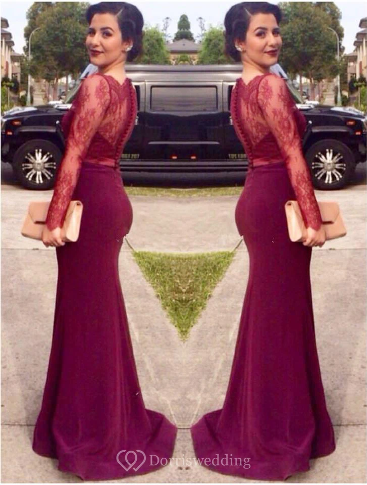 Sexy Lace Mermaid Illusion Evening Dress Zipper Button Back