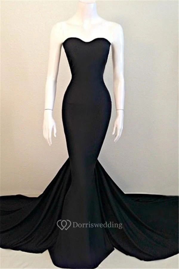 Sexy Mermaid Black Sweetheart Evening Dress Sleeveless Sweep Train