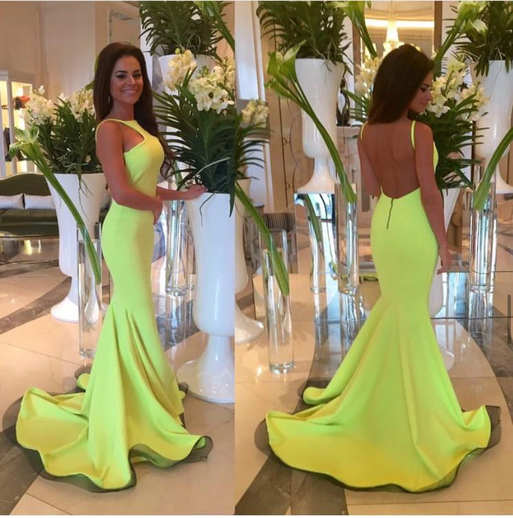 Sexy Mermaid Jewel Open Back Prom Dress Sweep Train Sleeveless