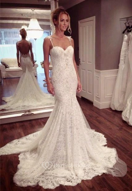 Sexy Mermaid Lace Court Train Elegant Wedding Dress Spaghetti Strap