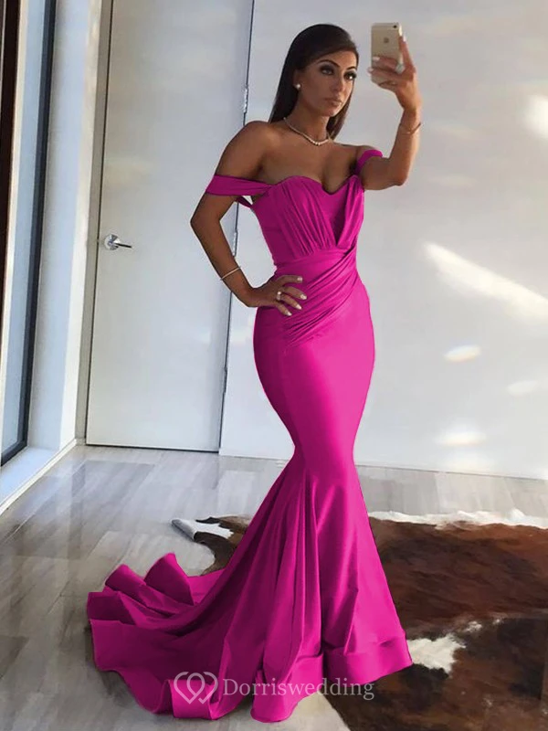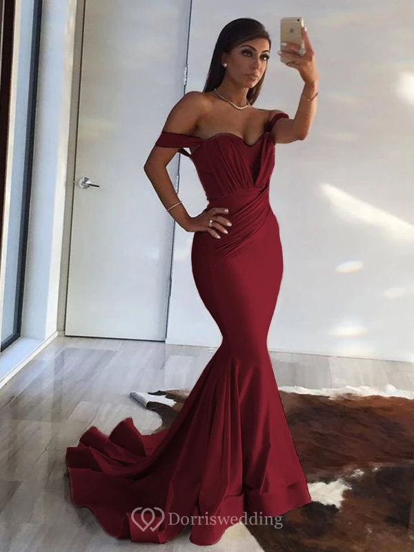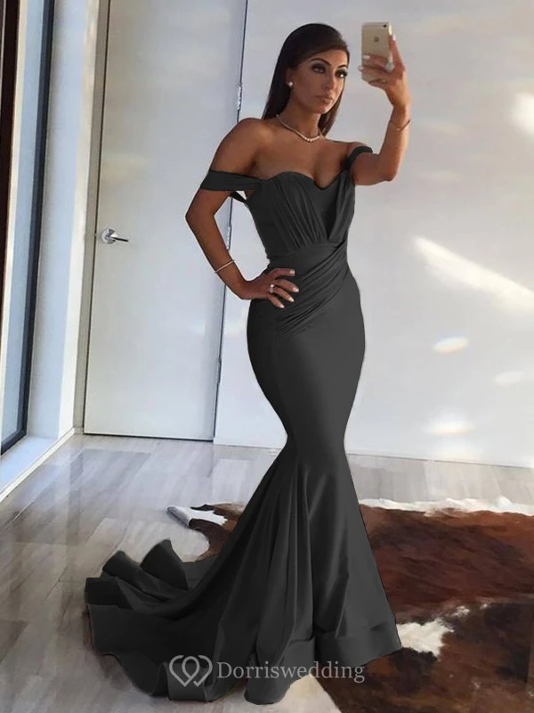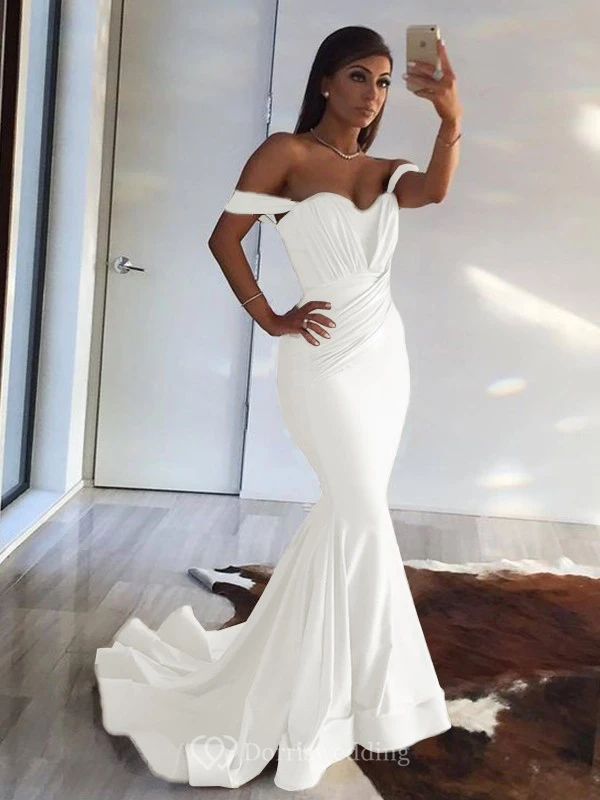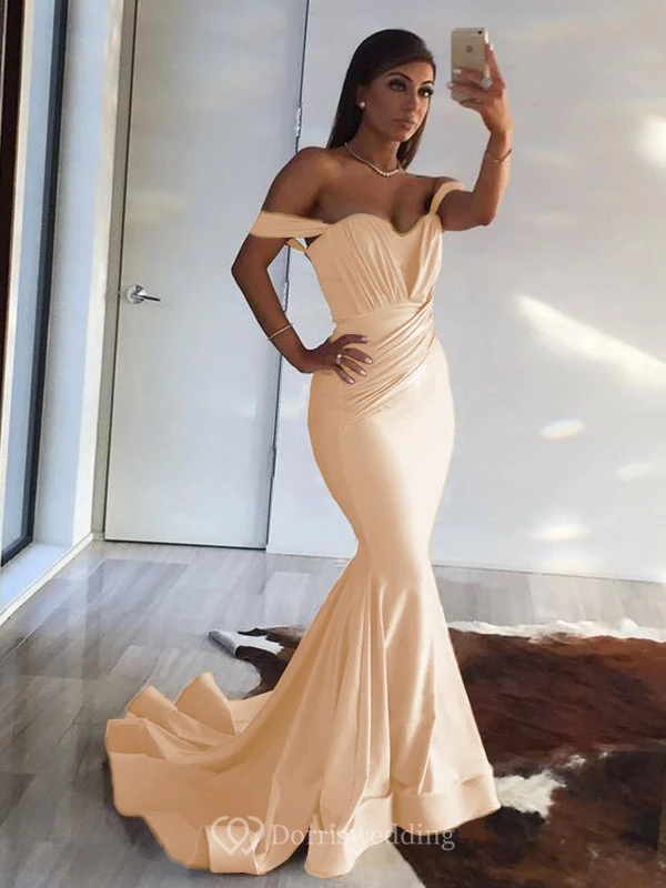 Sexy Mermaid Off-the-shoulder Sheath Champagne Ruched Evening Prom Dress