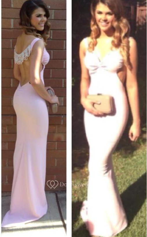 Sexy Mermaid Straps Pink Pearls Prom Dress Sweep Train Sleeveless
