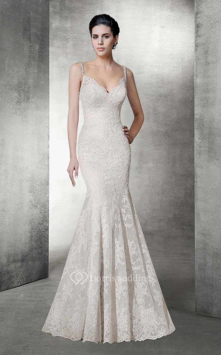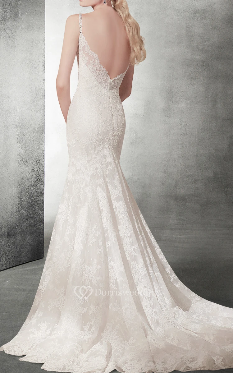 Sexy Mermaid V Neck Lace Wedding Dress
